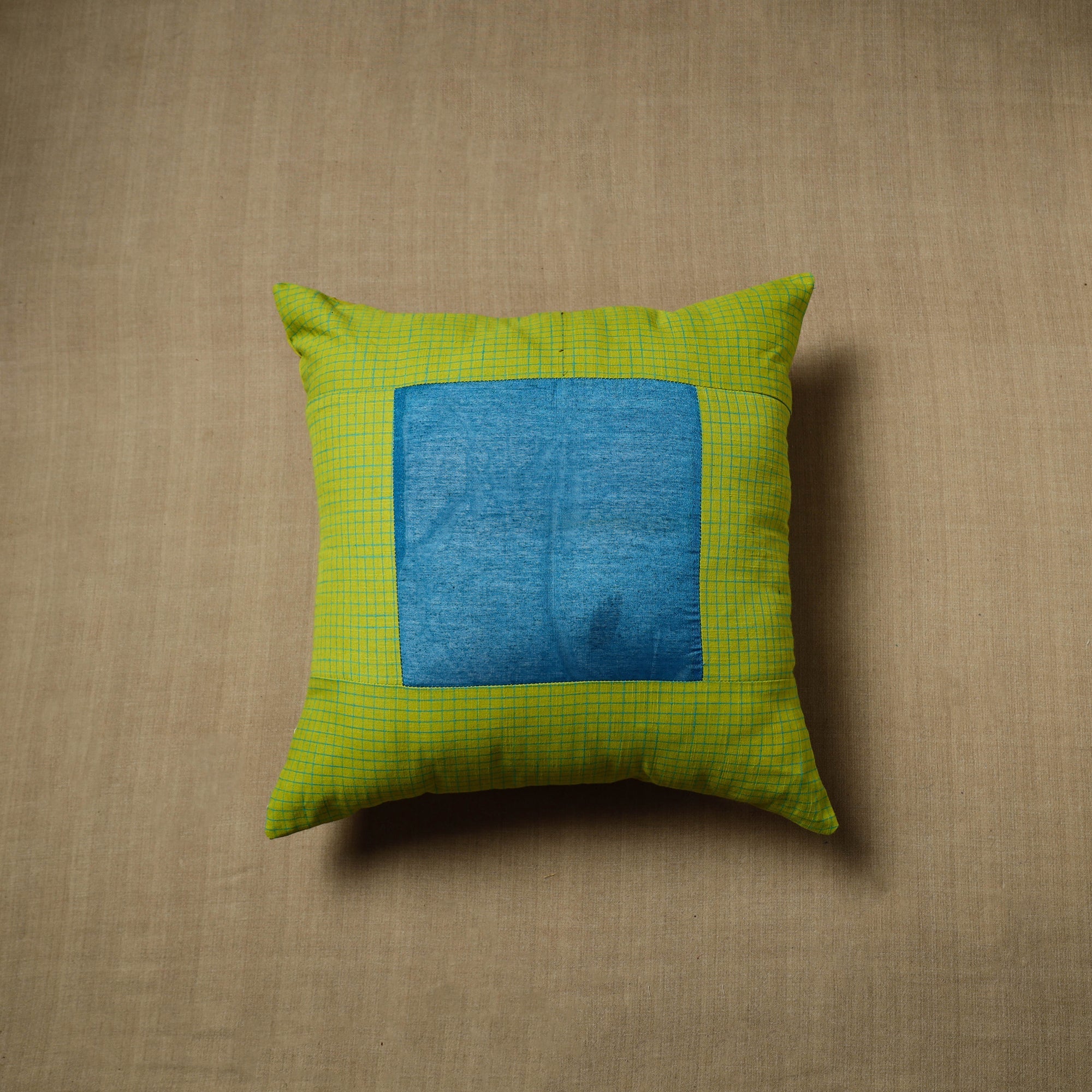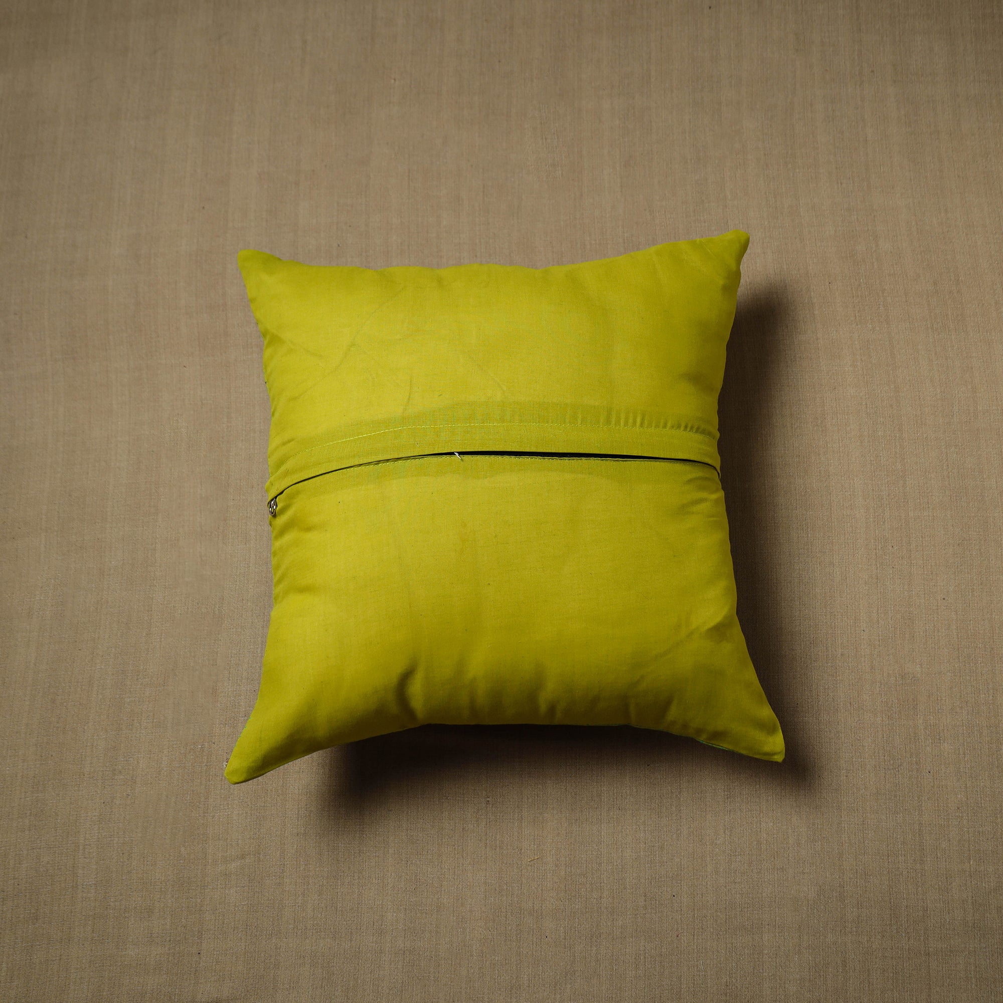 This exquisite green kanchipuram cushion cover handcrafted from cotton fabric.Each cover features patchwork that reflects the rich cultural heritage of kanchipuram. Perfect for adding a touch of elegance and charm to any room, this cushion cover blends durability with style.