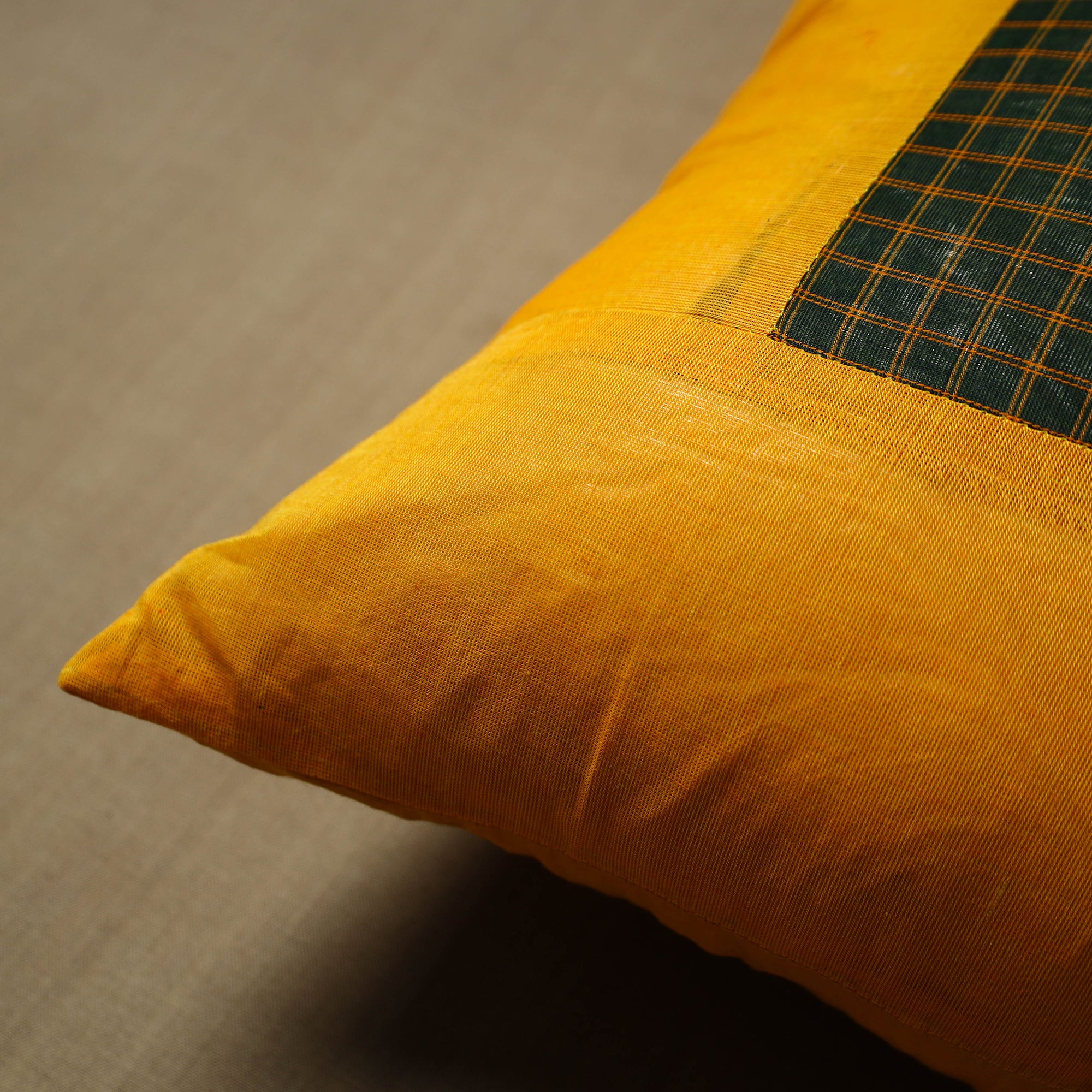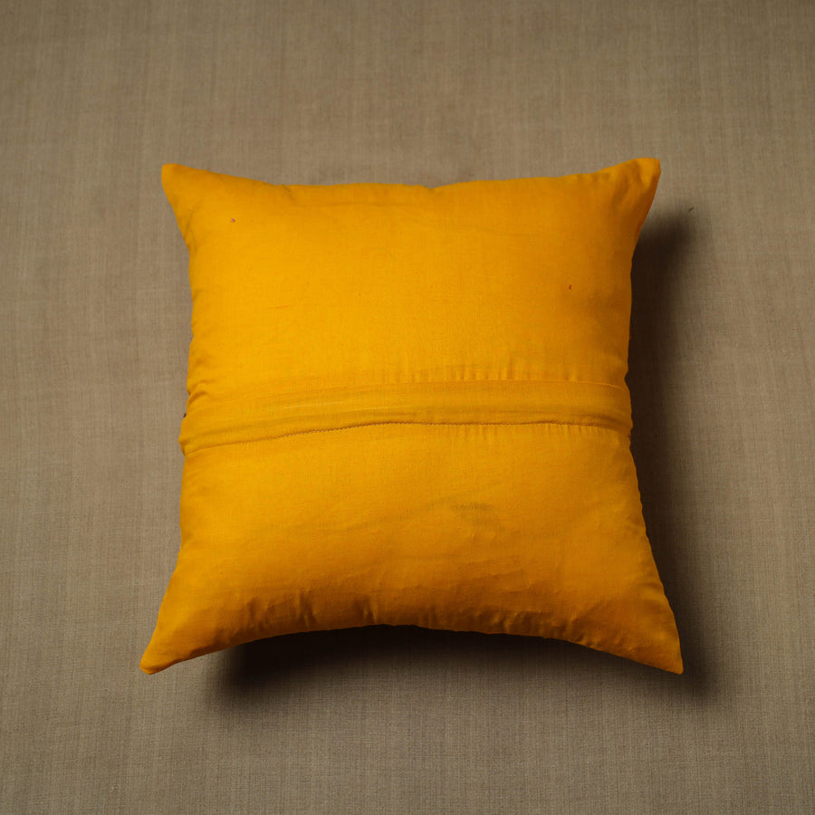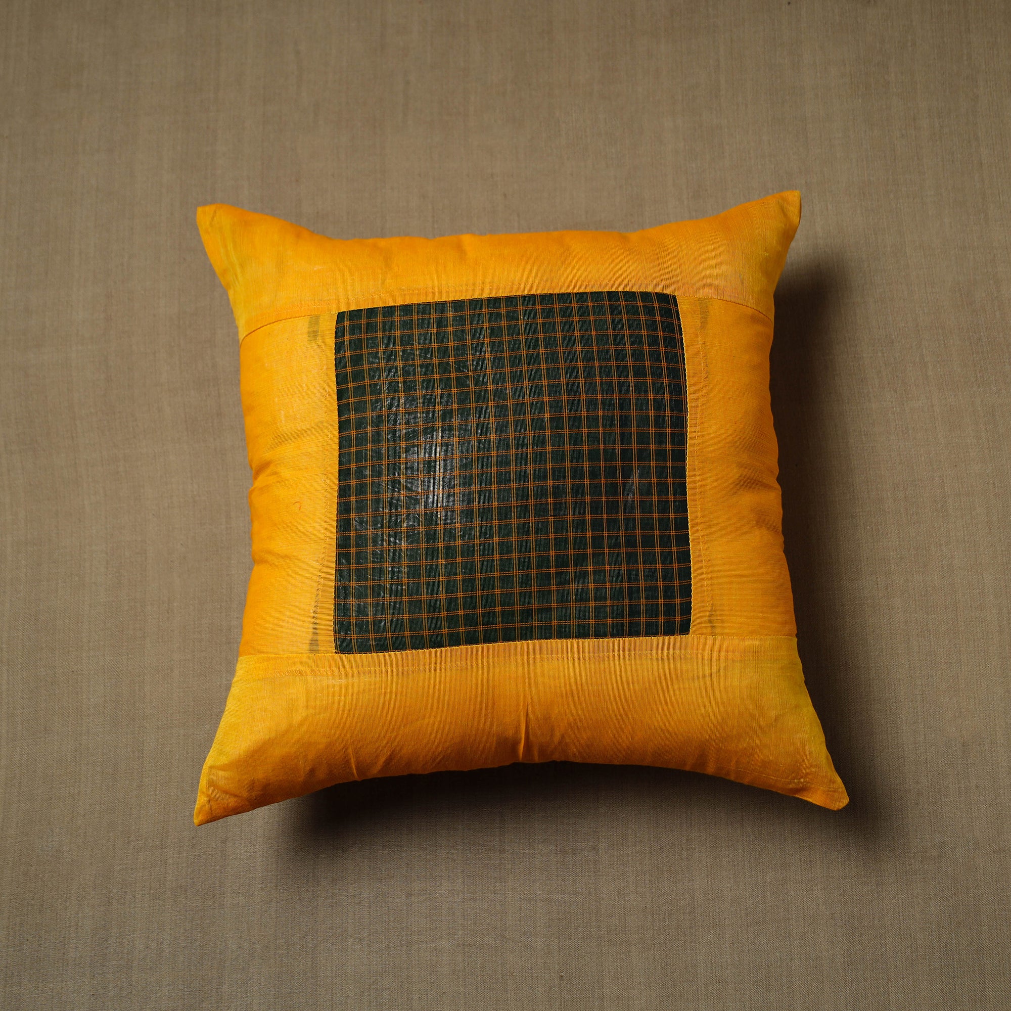 This exquisite yellow kanchipuram cushion cover handcrafted from cotton fabric.Each cover features patchwork that reflects the rich cultural heritage of kanchipuram. Perfect for adding a touch of elegance and charm to any room, this cushion cover blends durability with style.