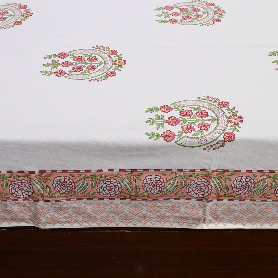 Blue - Block Print Cotton Double Sanganeri Bed Sheet Set (108 x 90 in) 08