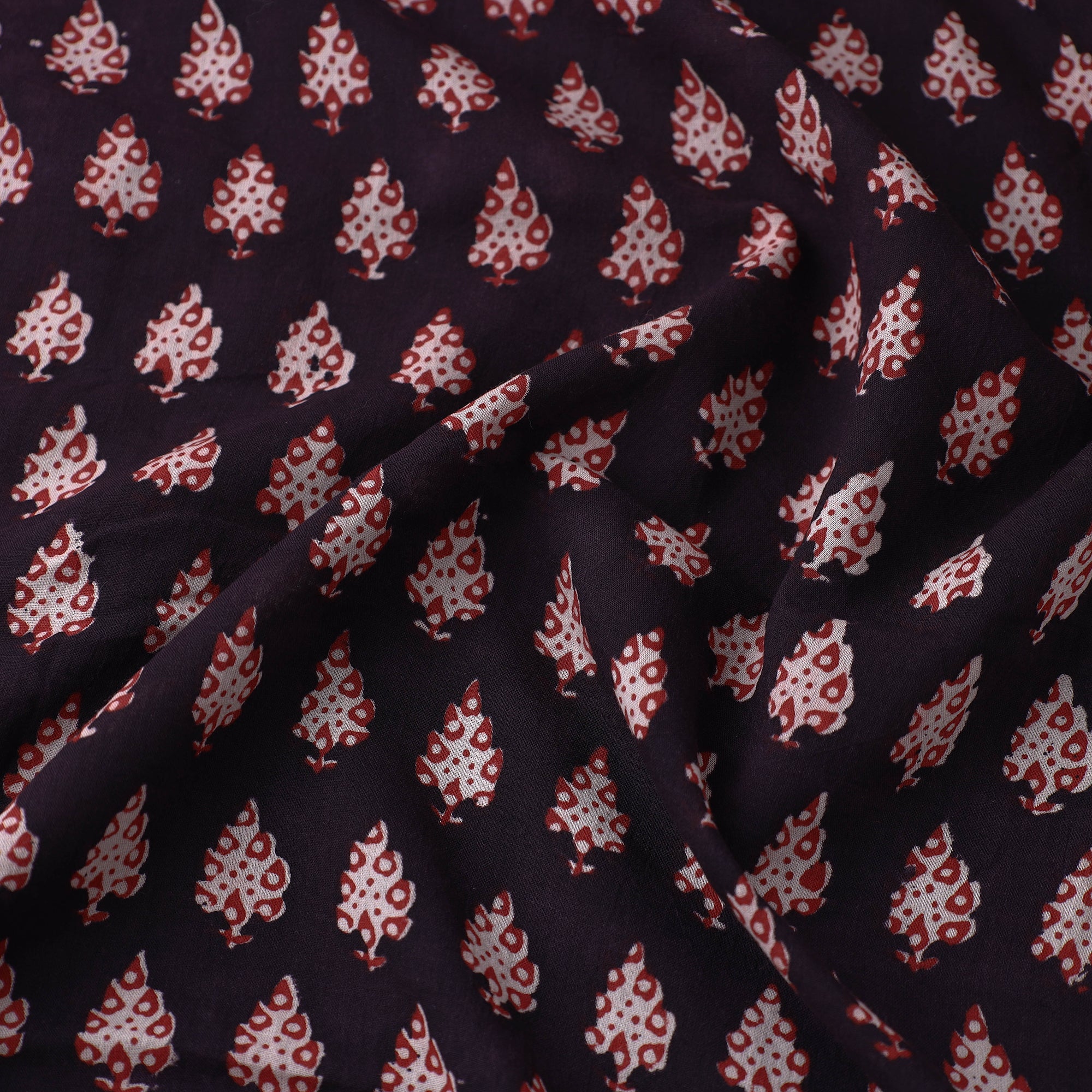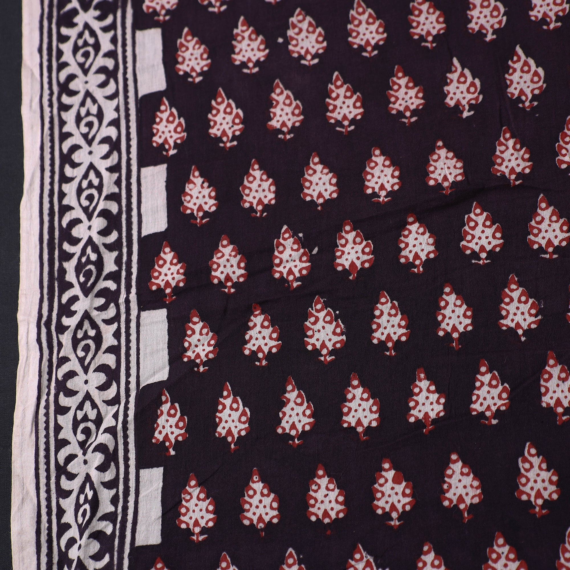 Bagh layouts are dramatic with the use of black and red alternately on a white background. Its production process is manually painstaking. Though the techniques and designs are age-old the prints retain their contemporary appeal.