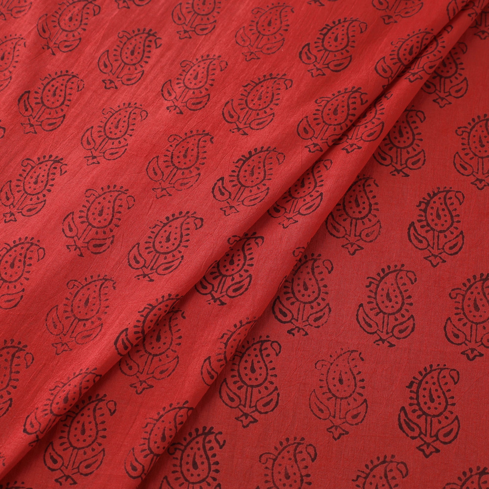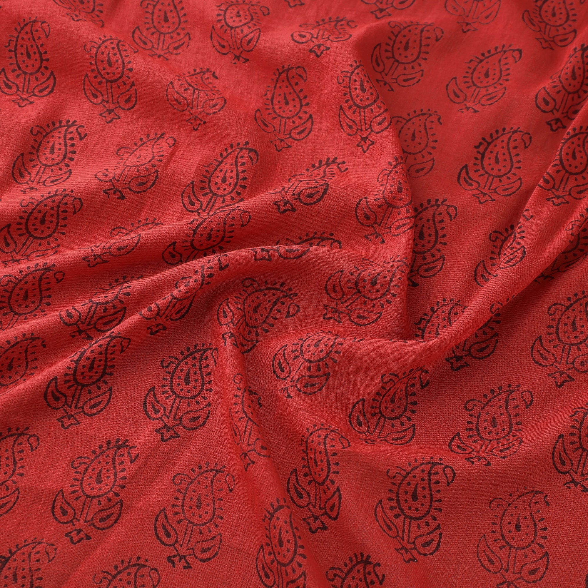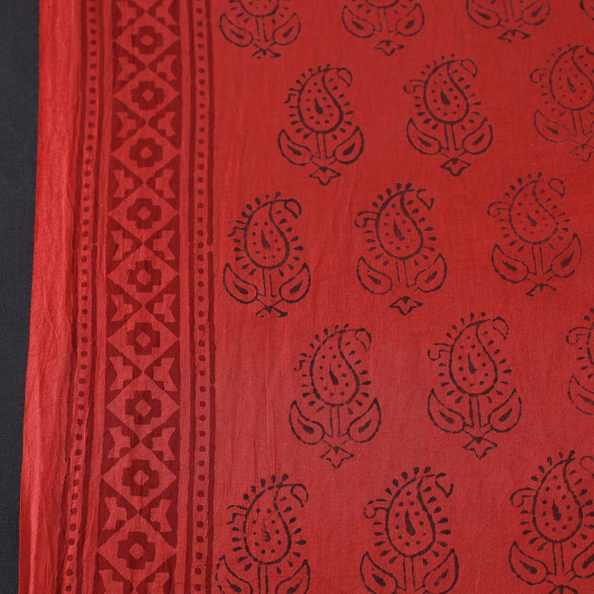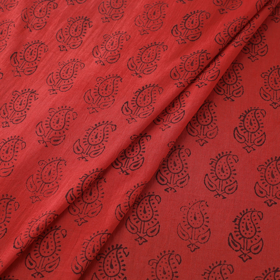 Red - Natural Dyed Cotton Hand Block Bagh Print Fabric 14