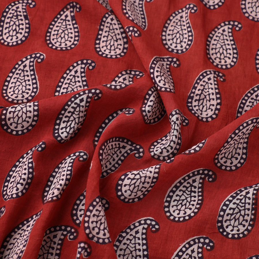 The beauty of tradition into your wardrobe with this stunning red bagh print mul cotton fabric. Hand block printed in Bagh, Madhya Pradesh, this fabric is created using natural dyes, reflecting the cultural heritage. Each piece is crafted with intricate Bagh motifs, perfect for unique, sustainable fashion or home decor projects.