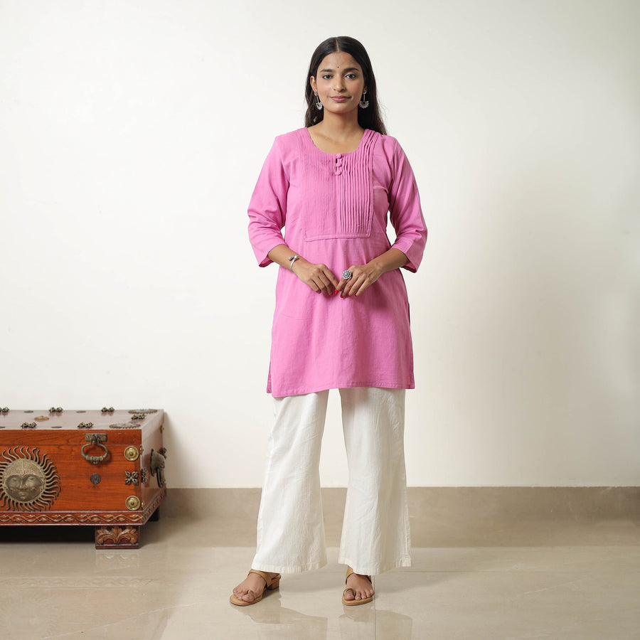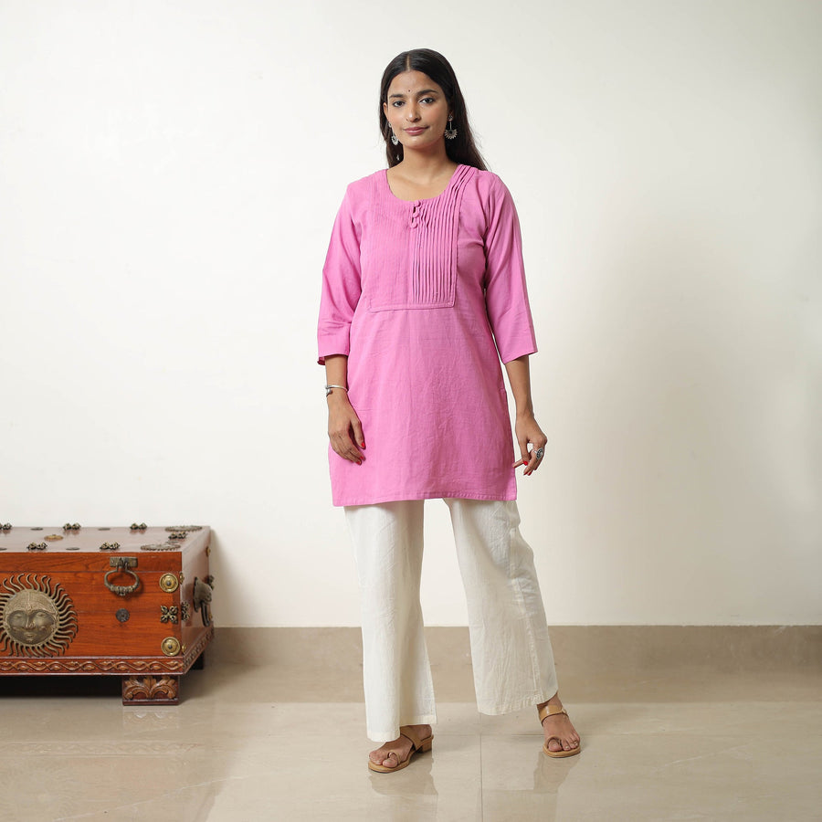 Feel beautiful in our stylish short plain kurta. Made from prewashed cotton, this kurta is perfect for all-day wear, whether at home or outside. The pintuck design adds a stylish touch, making this kurta effortlessly chic and elegant.