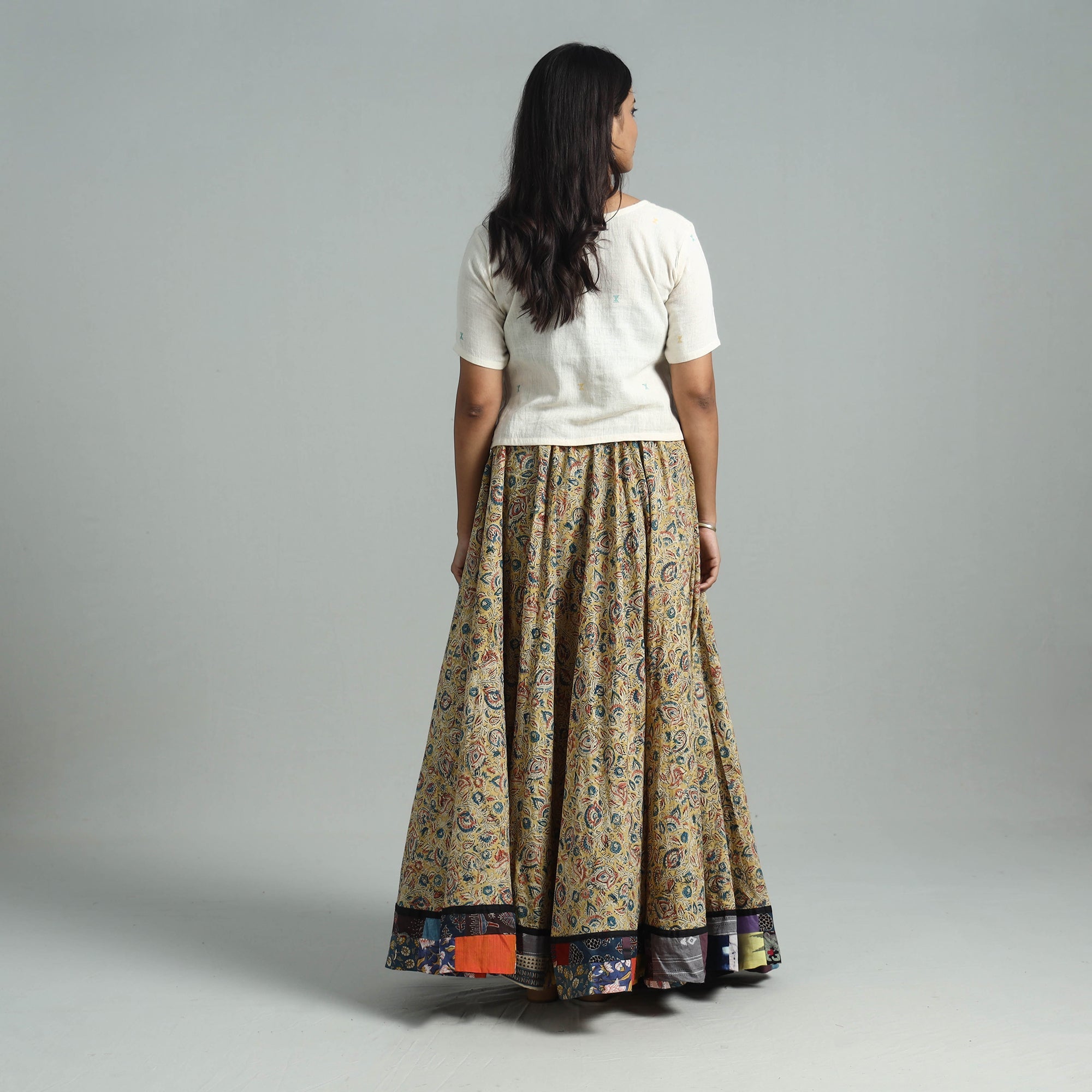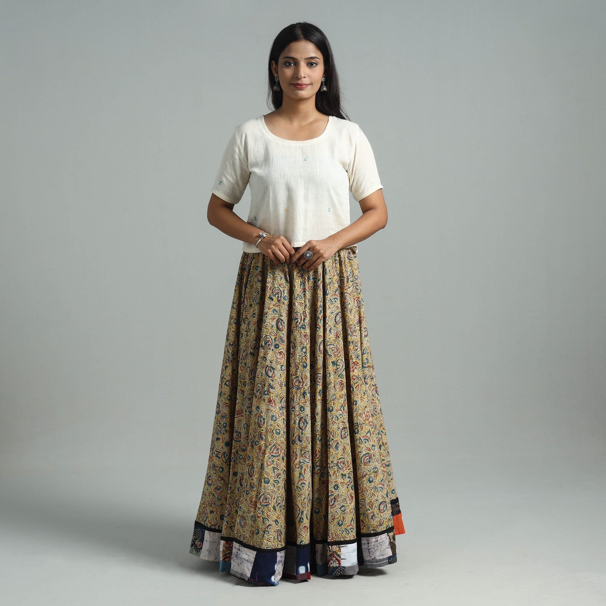 This beautifully handcrafted Kalamkari block-printed long cotton skirt. Known for its intricate artistry the kalamkari craft brings alive centuries-old Indian heritage, designed for today’s casual yet elegant look. With soft cotton fabric and a comfortable fit, this skirt is perfect for daily wear or special occasions.