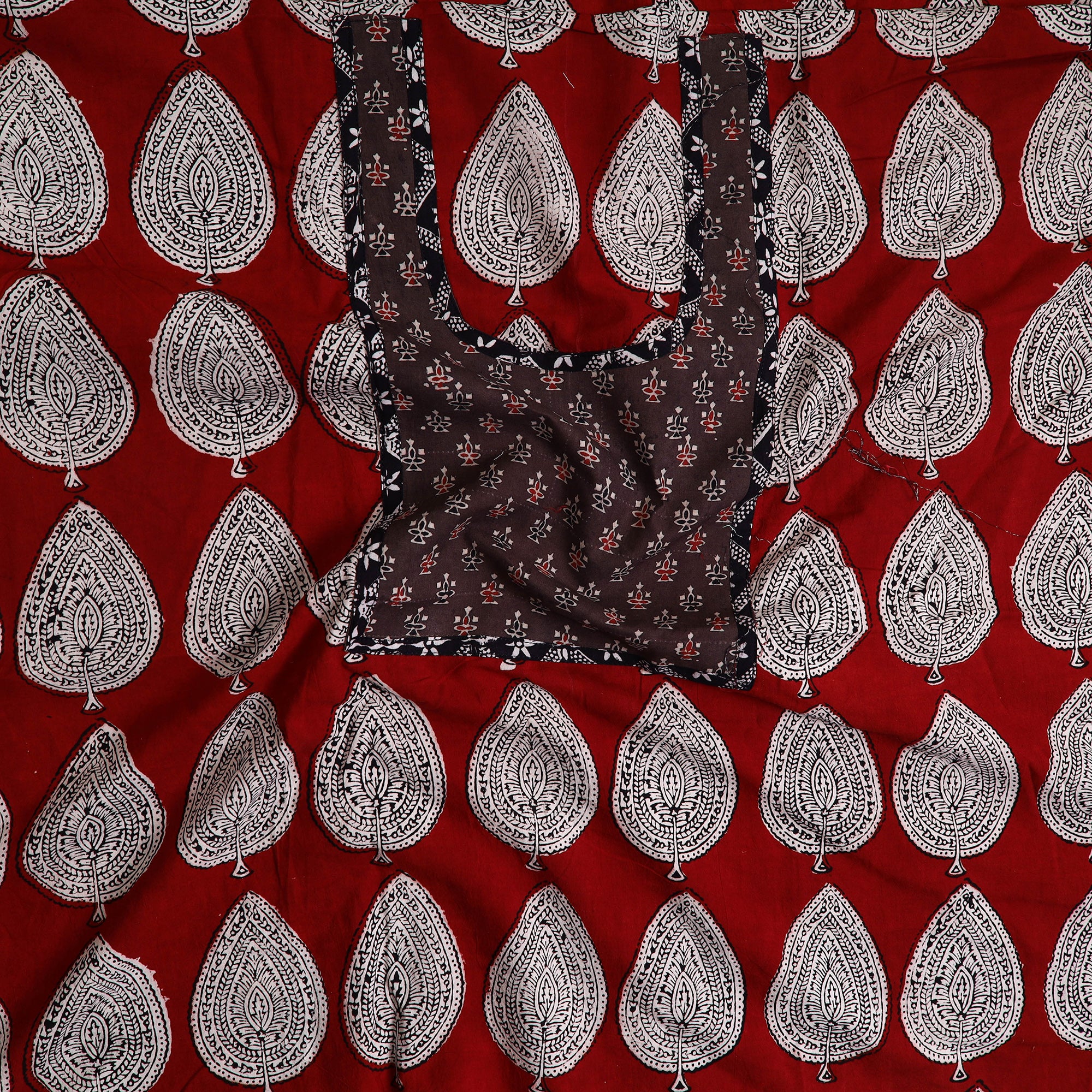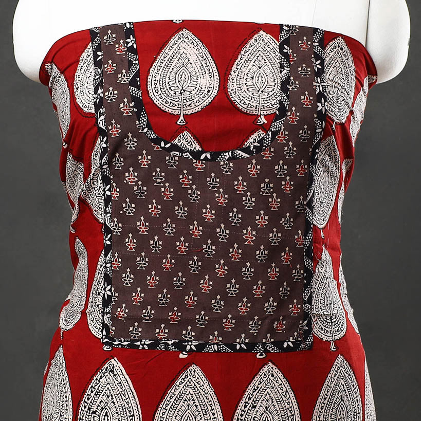 Embrace the rich tradition this red bagh print cotton kurta material with patchwork, crafted by skilled artisans from Bagh, Madhya Pradesh. This fabric features intricate block-print that reflect India's cultural heritage. Known for its bold colors and detailed prints, making it an ideal choice for those who value both tradition and sustainability.