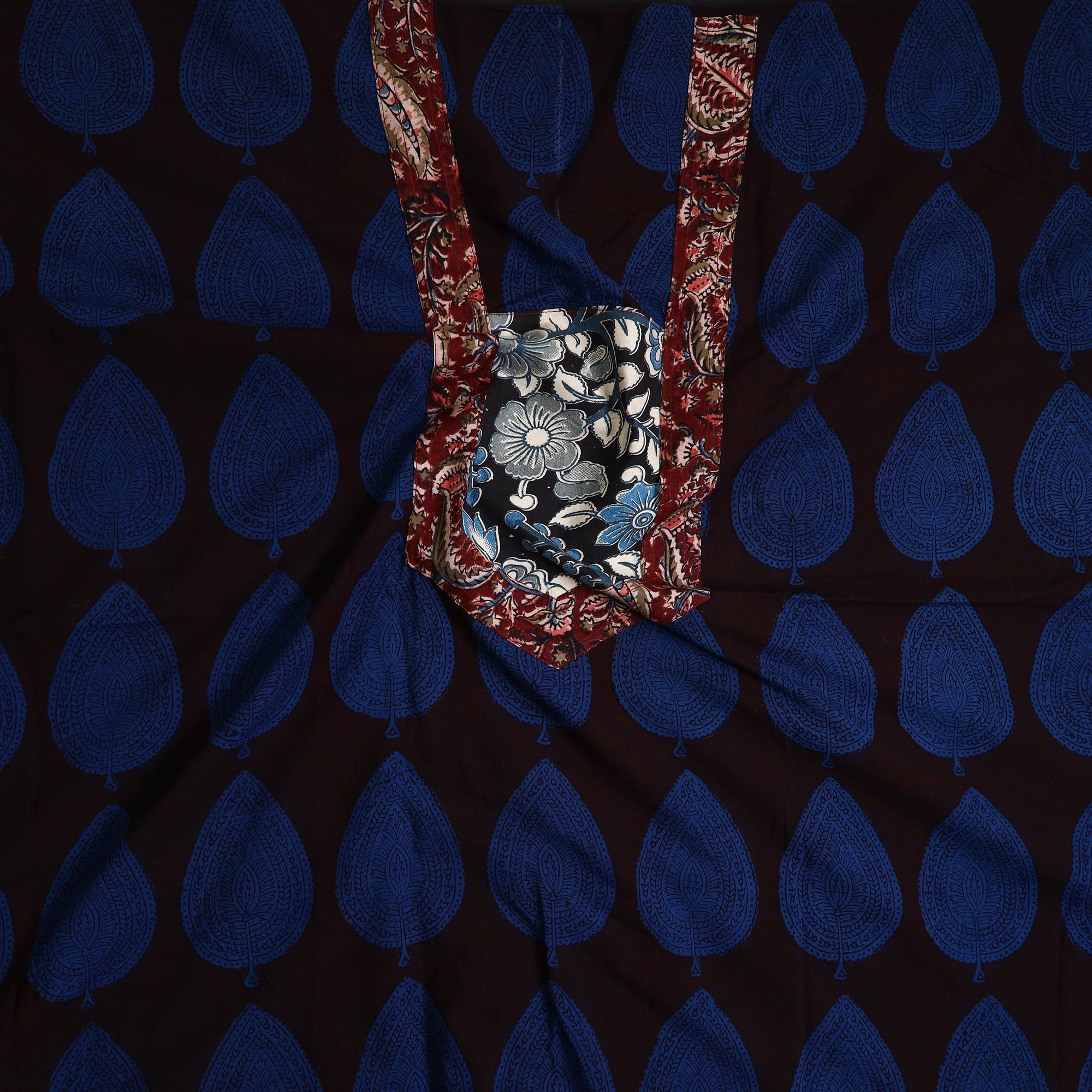 Embrace the rich tradition this blue bagh print cotton kurta material with patchwork, crafted by skilled artisans from Bagh, Madhya Pradesh. This fabric features intricate block-print that reflect India's cultural heritage. Known for its bold colors and detailed prints, making it an ideal choice for those who value both tradition and sustainability.