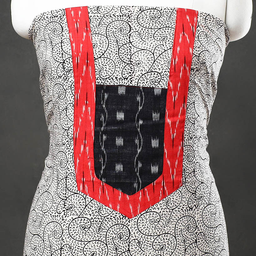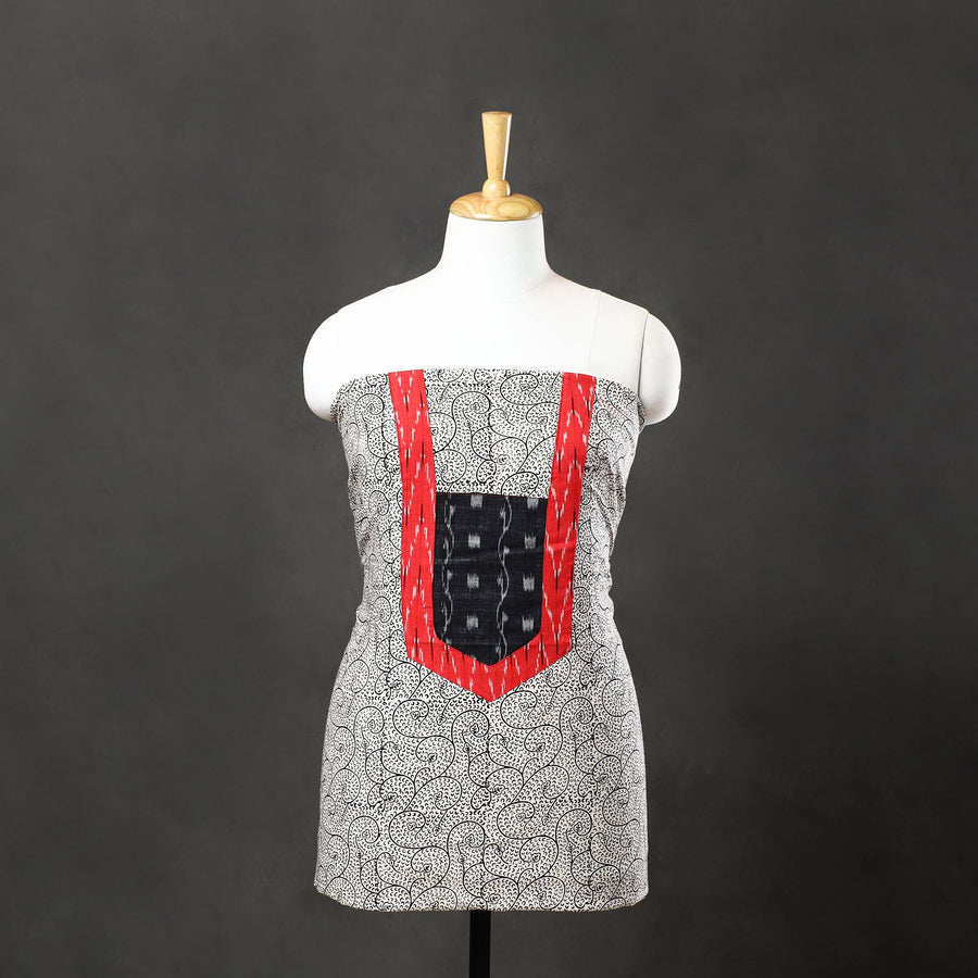 Embrace the rich tradition this beige bagh print cotton kurta material with patchwork, crafted by skilled artisans from Bagh, Madhya Pradesh. This fabric features intricate block-print that reflect India's cultural heritage. Known for its bold colors and detailed prints, making it an ideal choice for those who value both tradition and sustainability.