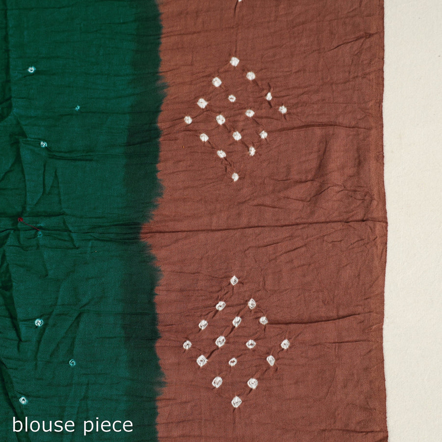 The art of bandhani with this green kutch cotton saree, hand-tie and dyed by skilled artisans. This beautiful saree showcases the traditional Bandhani technique resulting in vibrant patterns. Made with cotton, it's lightweight perfect for any occasion.