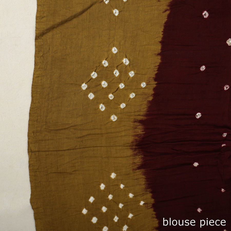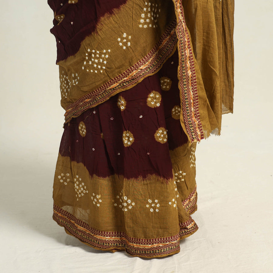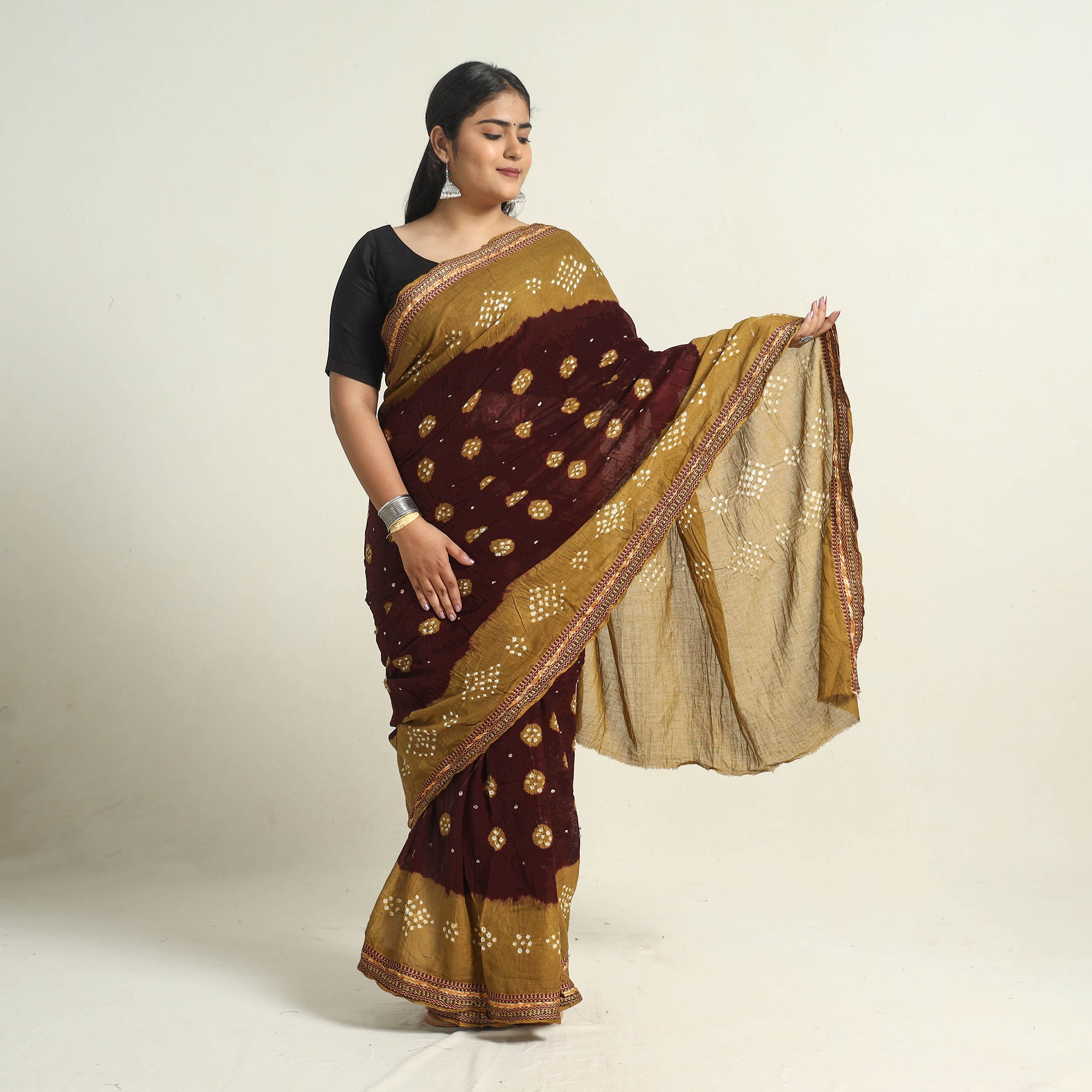The art of bandhani with this brown kutch cotton saree, hand-tie and dyed by skilled artisans. This beautiful saree showcases the traditional Bandhani technique resulting in vibrant patterns. Made with cotton, it's lightweight perfect for any occasion.