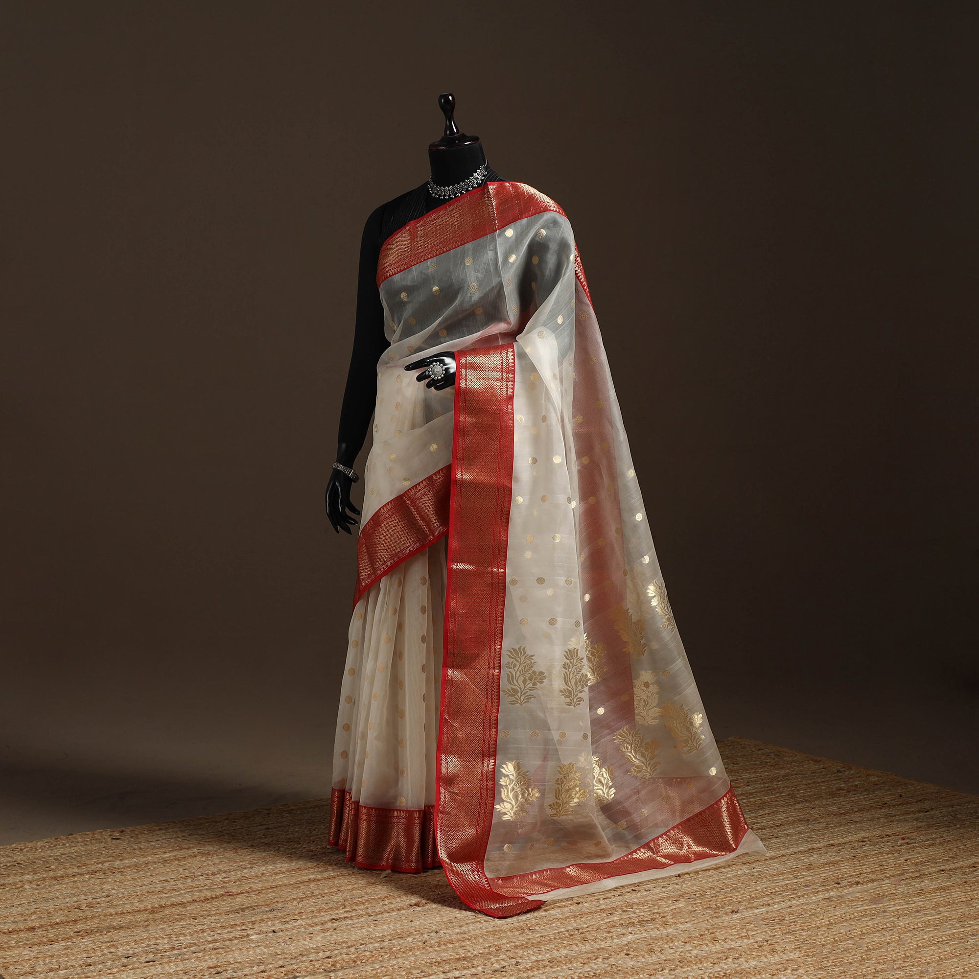 • White - traditional handloom chanderi silk saree 04