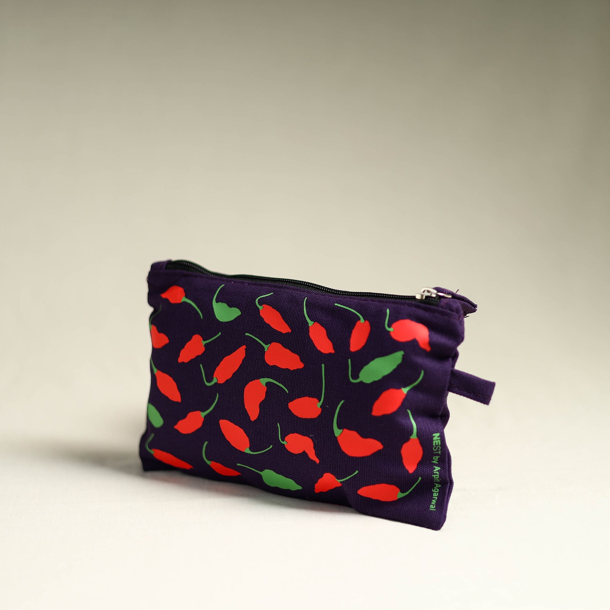 Material Embrace the beauty of Nagaland’s heritage with this utility pouch by NEST, featuring the iconic ghost chilli screen-printed on durable cotton canvas. Crafted for both style and function, it’s spacious enough to hold your daily essentials—whether it's cosmetics, stationery, or small gadgets.
