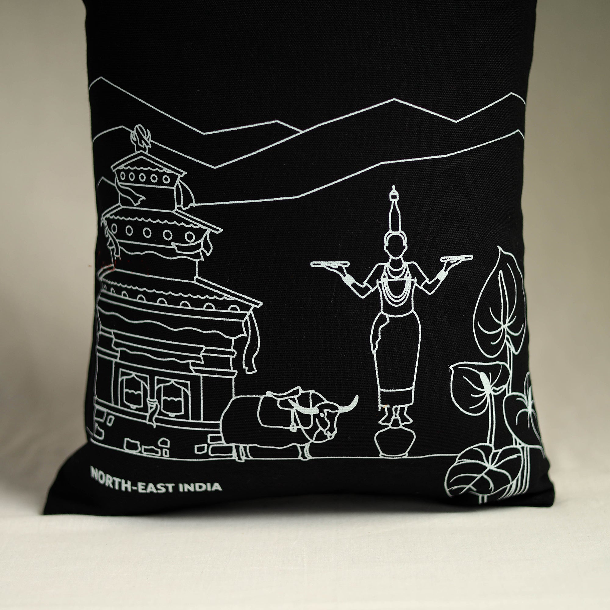 Elevate your style with this black screen-printed tote/shoulder bag by NEST, featuring North-East India's iconic symbols. Made from durable cotton canvas, this tote bag blends fashion and functionality. Spacious and versatile, it’s perfect for carrying daily essentials, whether for work, shopping, or travel. It has two simple pockets and one pocket on the inside.