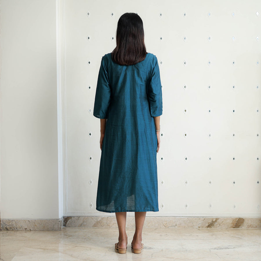 Step into effortless style with this elegant slub silk pintuck plain dress for women, featuring a handy side pocket for everyday convenience. Crafted from slub silk, this dress is perfect for casual wear or festive events, combining comfort and sophistication.