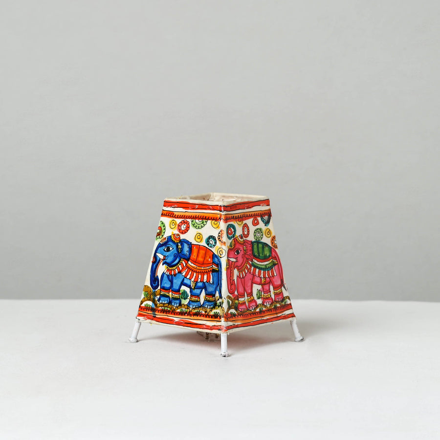 | Material | Add a cultural touch to your home with handmade Tholu Bommalata leather table lamp. Material used - leather, iron frame, natural colors, bulb holder with plug and wire.This traditional art form from Andhra Pradesh has a 2000-year history of storytelling through vibrant shadow puppetry. Each lamp is carefully handpainted on leather, showcasing intricate designs and vivid colors that glow like jewels when lit. A perfect blend of heritage and craftsmanship, this lamp makes a stunning decor piece. |