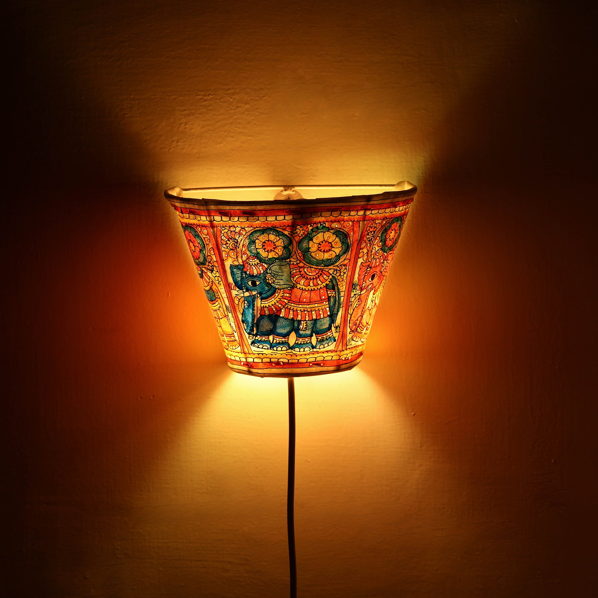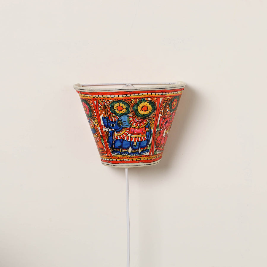 • Handpainted Tholu Bommalata Leather Wall Lamp