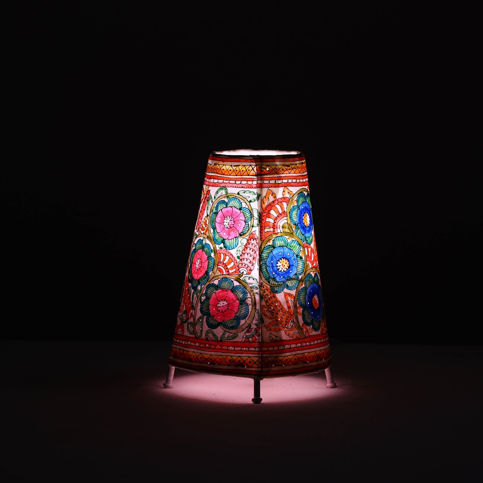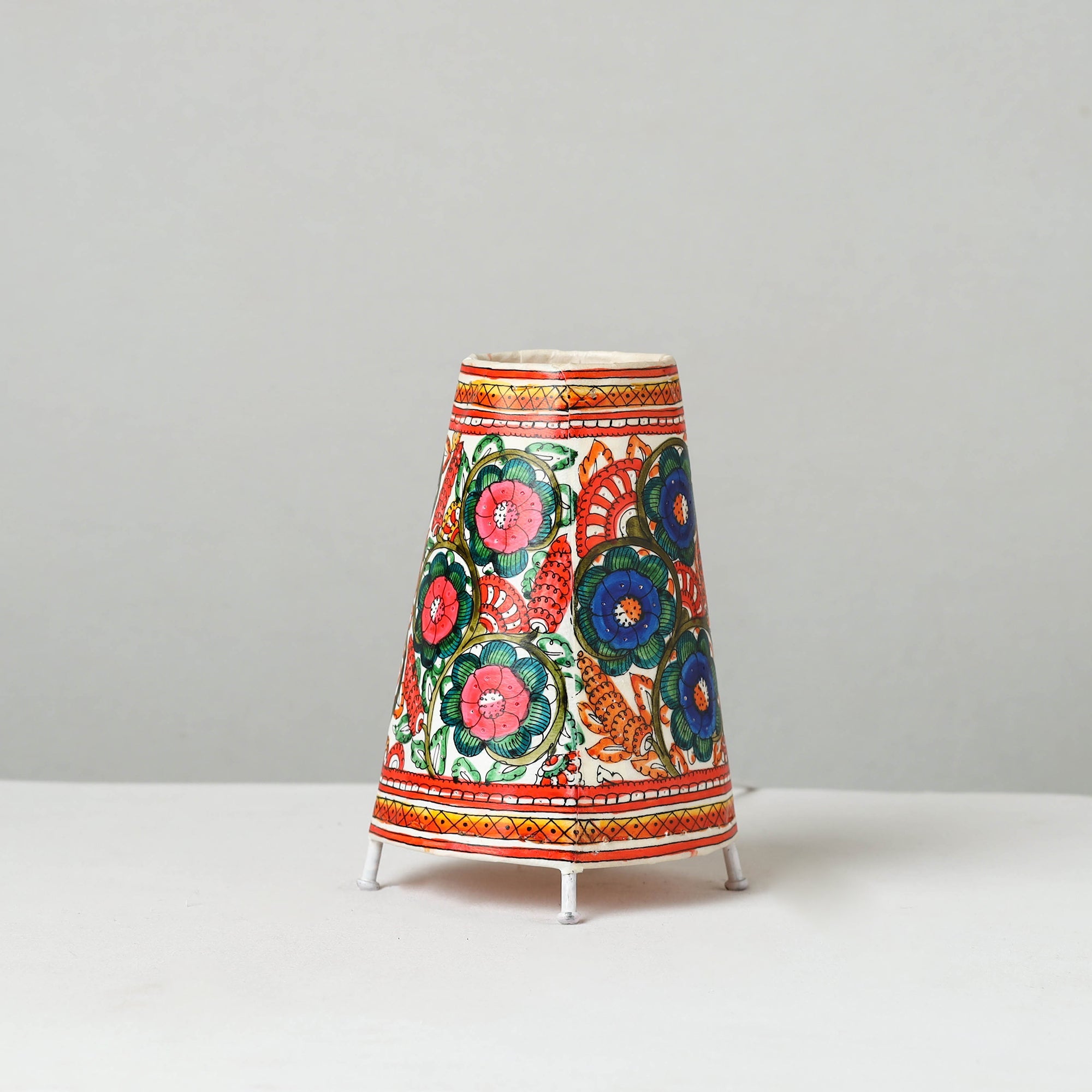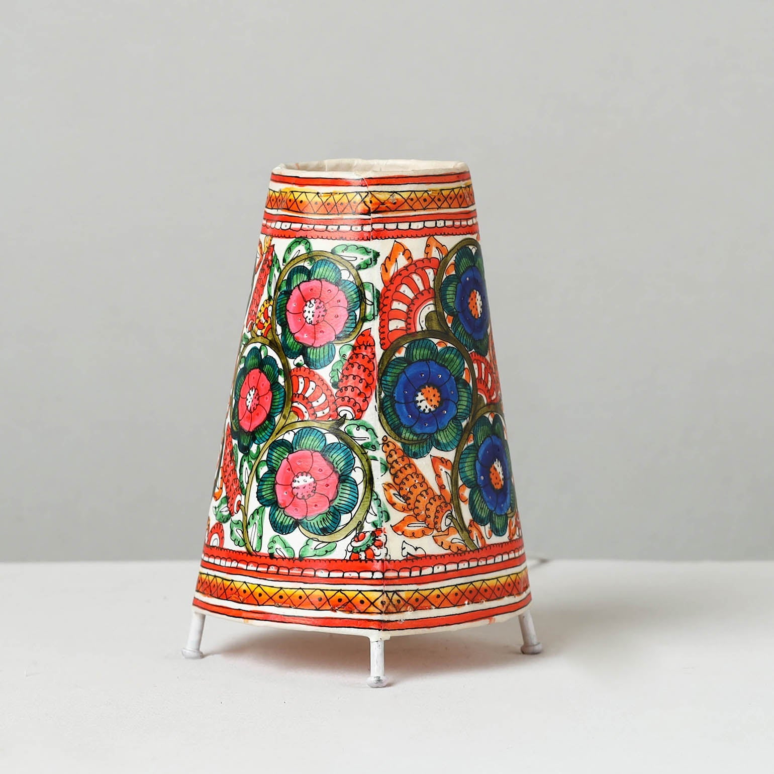 | Material | Add a cultural touch to your home with handmade Tholu Bommalata leather table lamp. Material used - leather, iron frame, natural colors, bulb holder with plug and wire.This traditional art form from Andhra Pradesh has a 2000-year history of storytelling through vibrant shadow puppetry. Each lamp is carefully handpainted on leather, showcasing intricate designs and vivid colors that glow like jewels when lit. A perfect blend of heritage and craftsmanship, this lamp makes a stunning decor piece. |