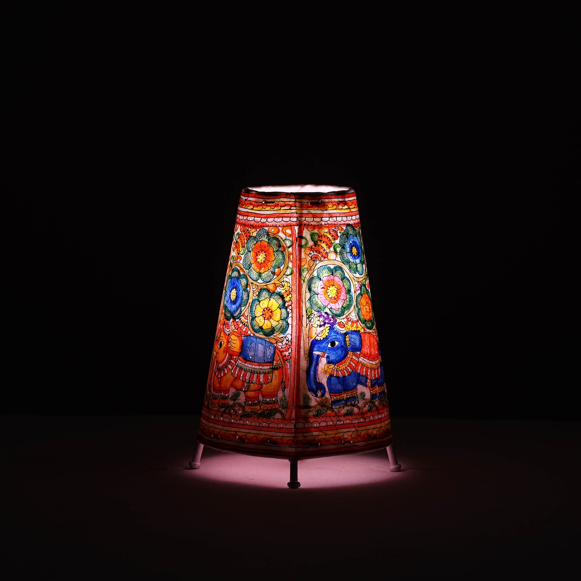 | Material | Add a cultural touch to your home with handmade Tholu Bommalata leather table lamp. Material used - leather, iron frame, natural colors, bulb holder with plug and wire.This traditional art form from Andhra Pradesh has a 2000-year history of storytelling through vibrant shadow puppetry. Each lamp is carefully handpainted on leather, showcasing intricate designs and vivid colors that glow like jewels when lit. A perfect blend of heritage and craftsmanship, this lamp makes a stunning decor piece. |