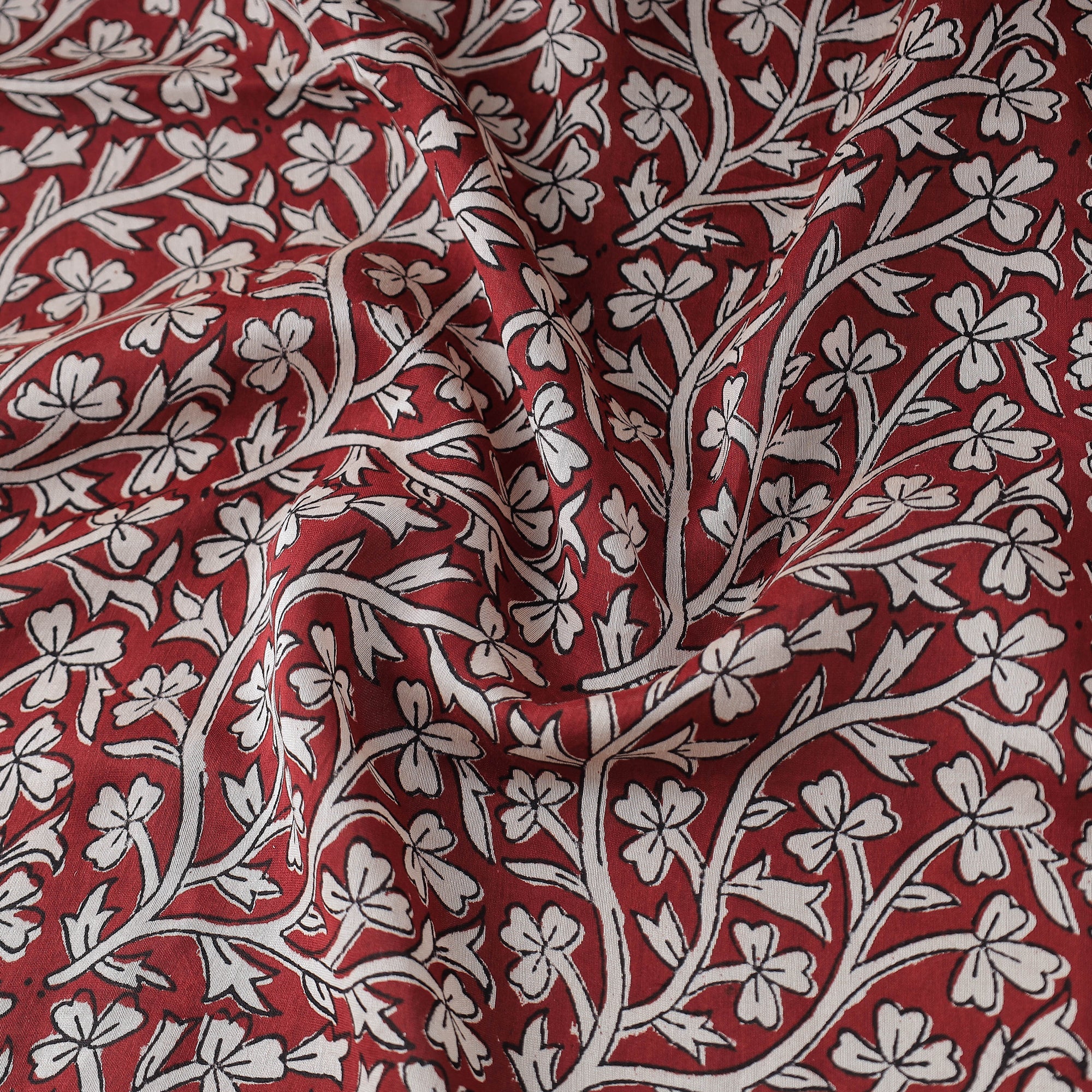 Fine-quality maroon bagh hand block printed chanderi silk cotton handloom fabric. Meticulously made by Mohammed Rafik Khatri, who practices the age-old art of Bagh block printing in the Dhar district of Madhya Pradesh, this fabric is a testament to skilled artistry. Using natural dyes and following traditional processes, each motif and pattern on the fabric is carefully hand block printed, creating a unique and exquisite design. The intricate and unique patterns make this fabric a perfect choice for a variety of projects, such as clothing, home decor, and accessories.