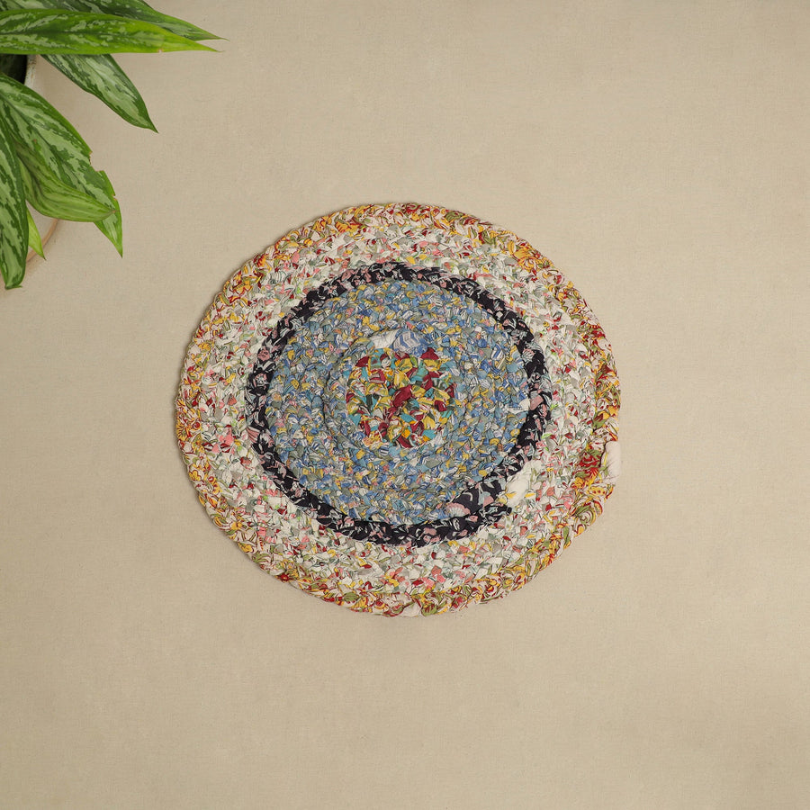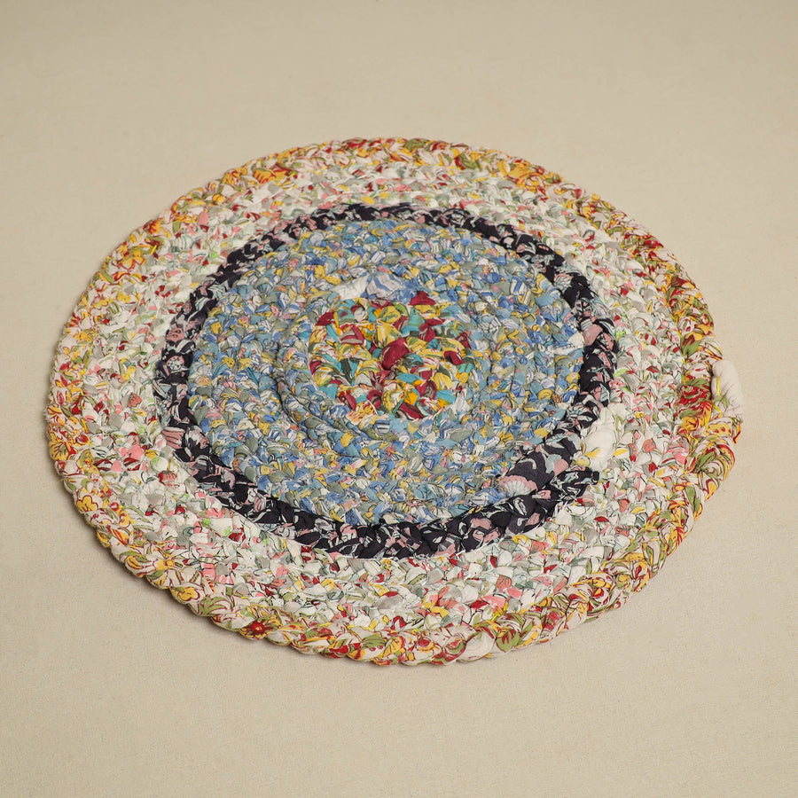 Add a touch of tradition to your home with this beautiful gudri hand-braided door mat. Made from upcycled cotton fabrics, it reflects the rich heritage of Indian craftsmanship, especially the Gudri technique known for its intricate hand-stitching. this door mat is durable and soft underfoot.