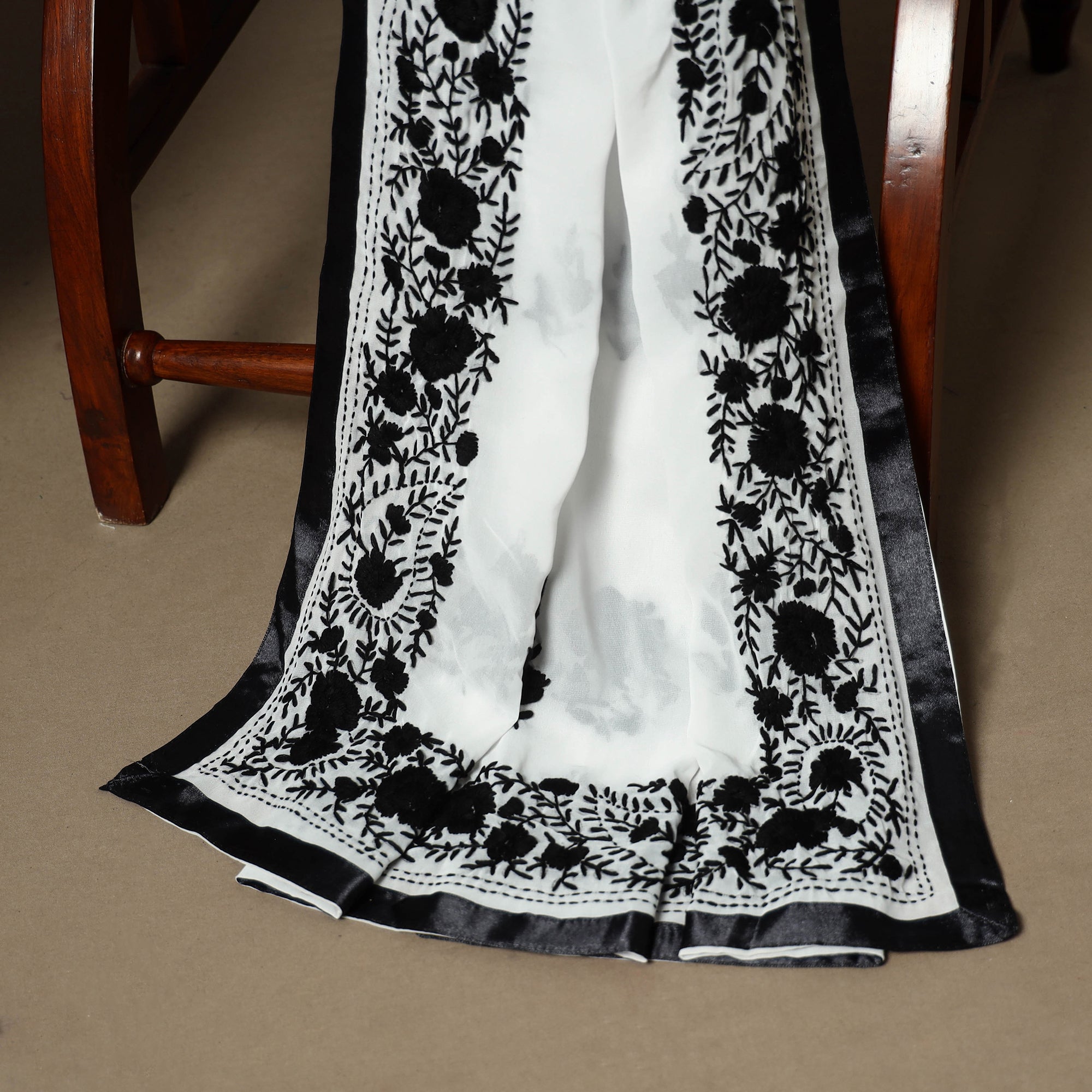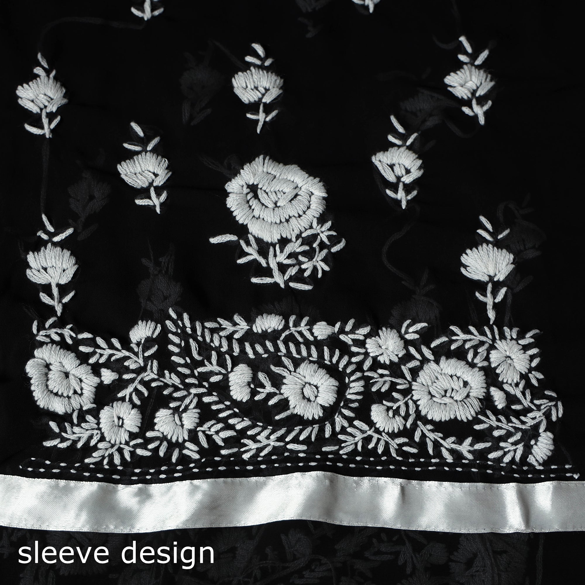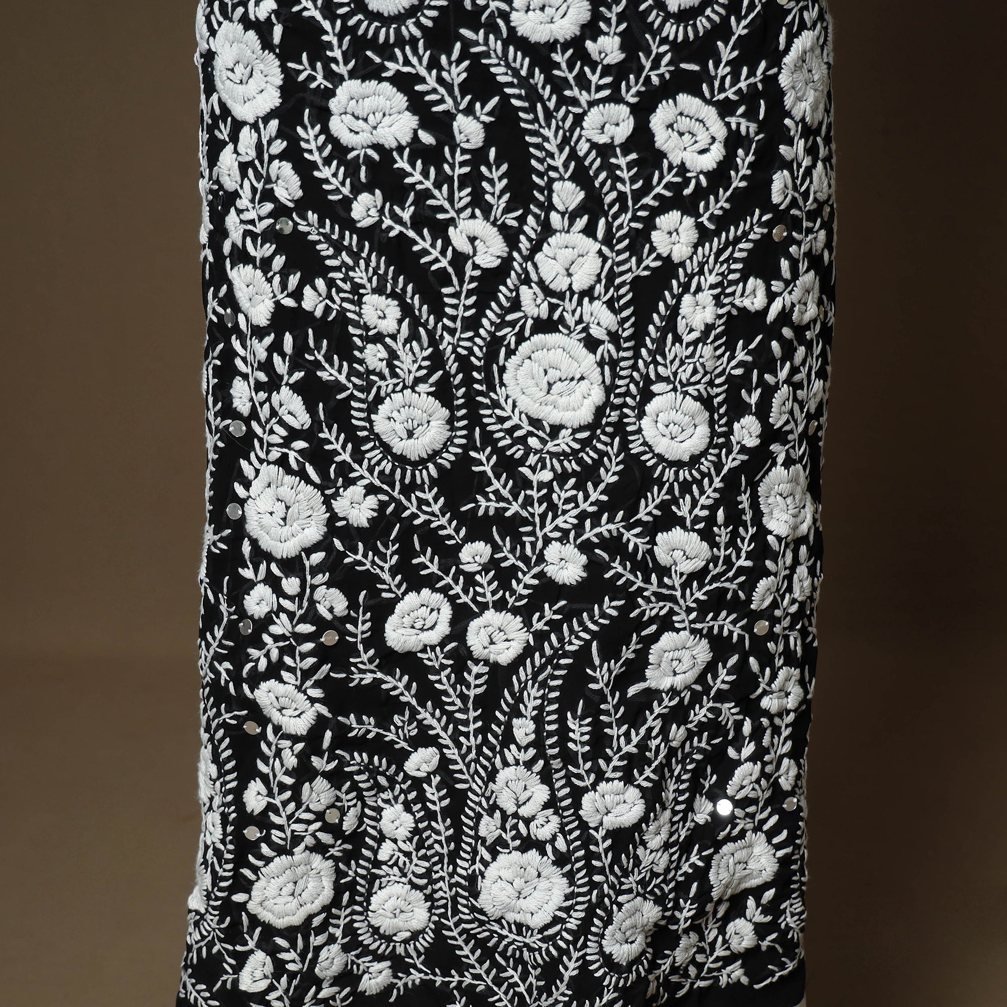 • Black - 3pc hand embroidery georgette unstitched phulkari