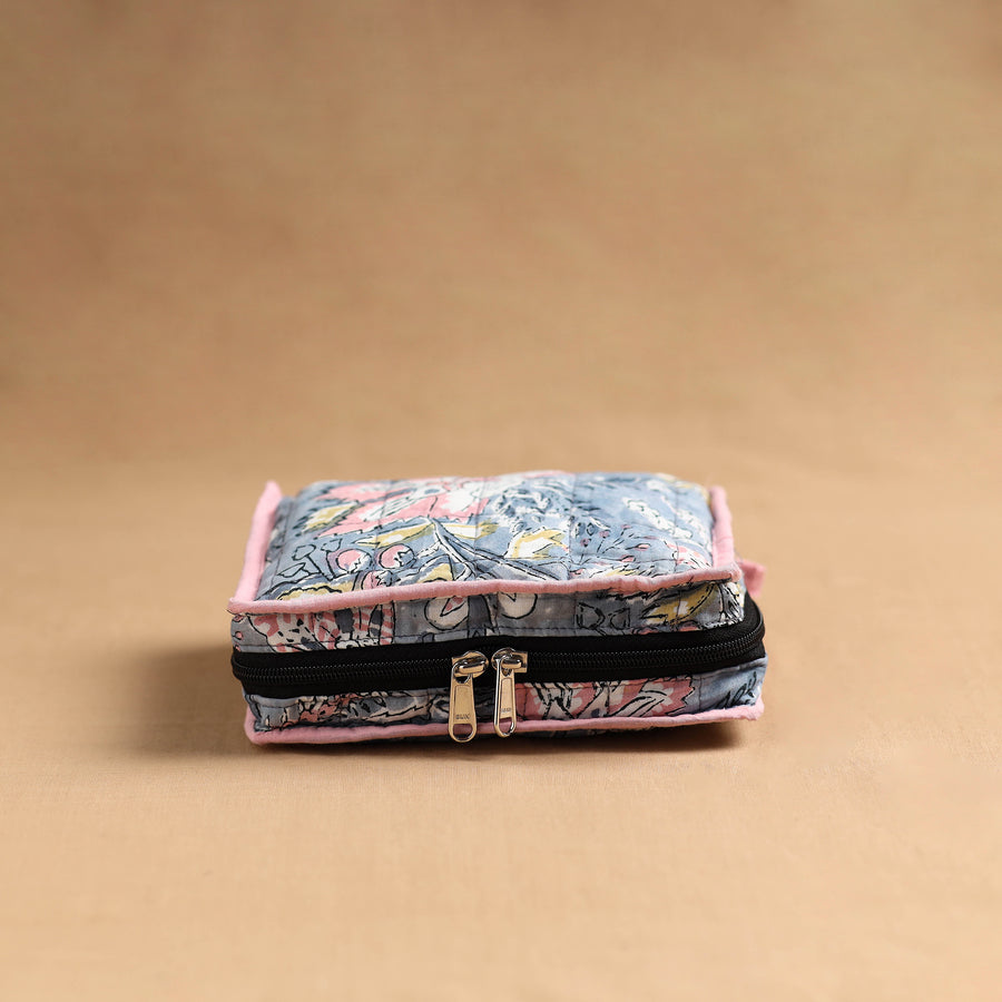 | Material | Grey handmade 4-pocket cotton jewellery bag, an eco-friendly solution crafted by skilled artisans. This bag offers ample space to organize your precious jewelry, with four spacious pockets and a soft cotton texture. |