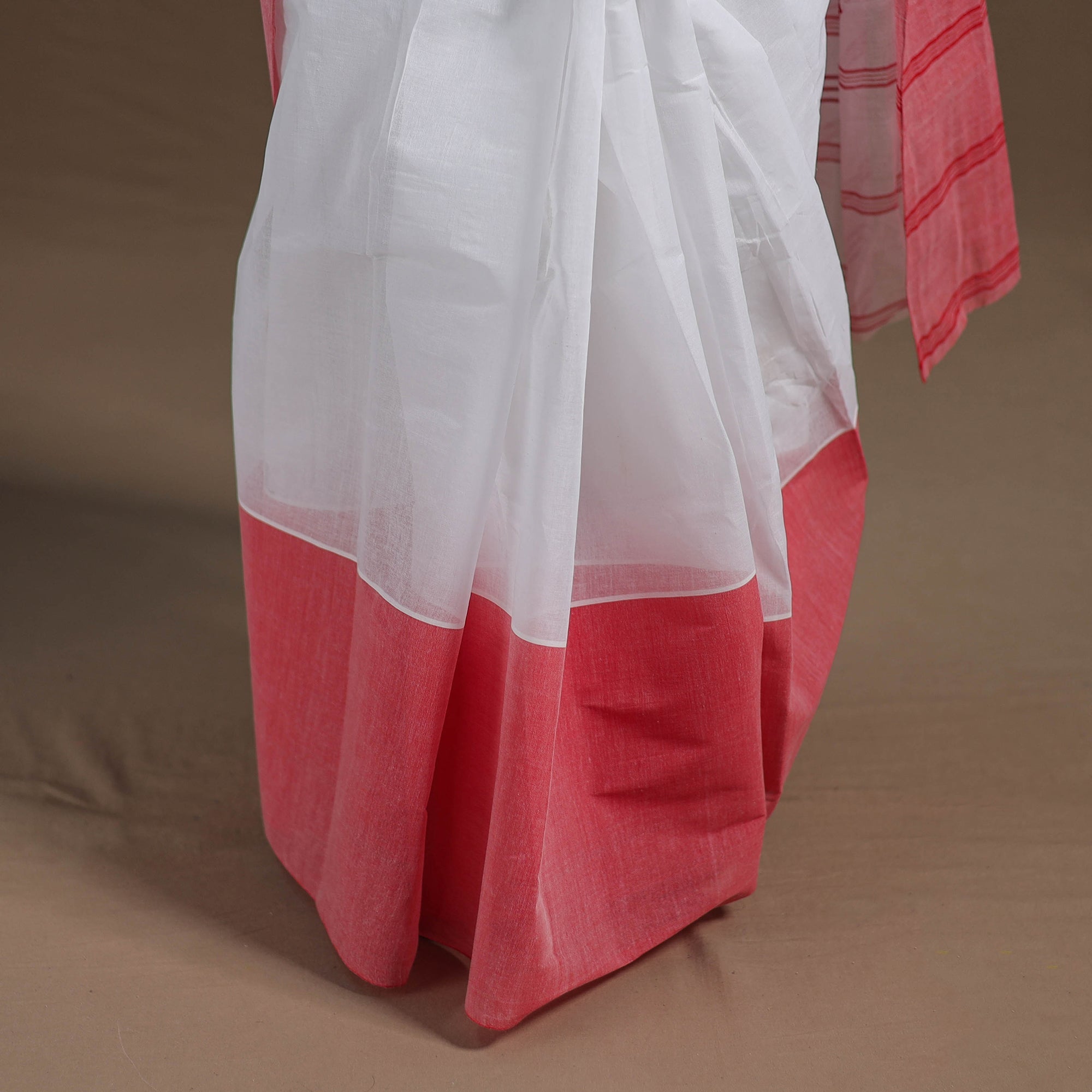 This white phulia jamdani handloom cotton saree features intricate a technique unique to Bengal. Handcrafted by skilled artisans tradition of Jamdani, which is like embroidery done directly on the loom. Woven with delicate care and adorned with a velvet border, this saree brings the beauty of Bengal’s rich cultural heritage to your wardrobe. Perfect for those who love traditional sustainable fashion.
