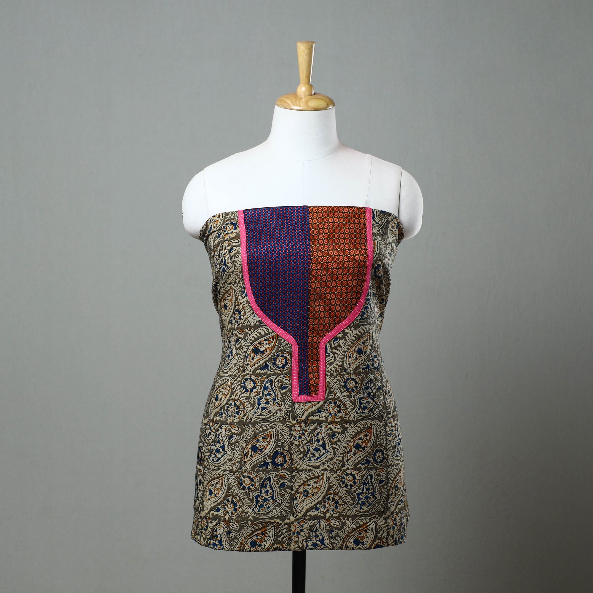 Crafted with green kalamkari block printing techniques, this kalamkari cotton kurta material with patchwork is a perfect blend of tradition and style. crafted by artisans, the vibrant colors and designs reflect the rich cultural heritage of Kalamkari. This is ideal for creating kurtas that are both stylish and timeless.
