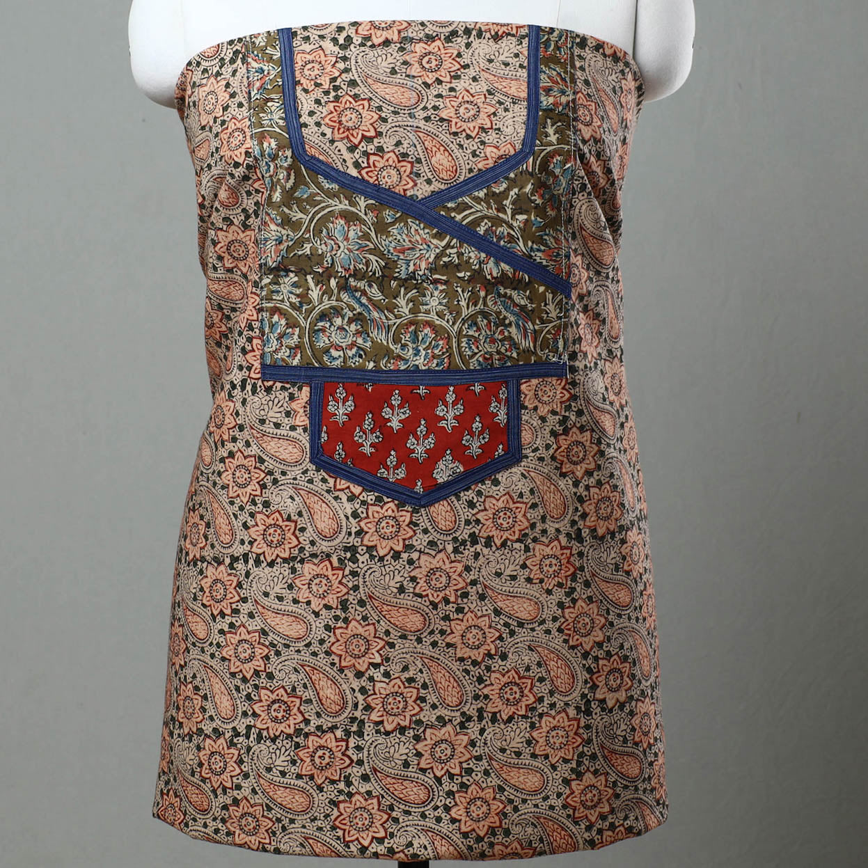 Crafted with multicolor kalamkari block printing techniques, this kalamkari cotton kurta material with patchwork is a perfect blend of tradition and style. crafted by artisans, the vibrant colors and designs reflect the rich cultural heritage of Kalamkari. This is ideal for creating kurtas that are both stylish and timeless.