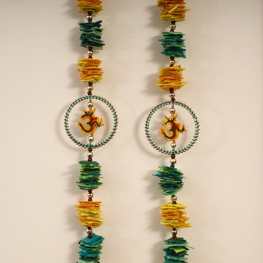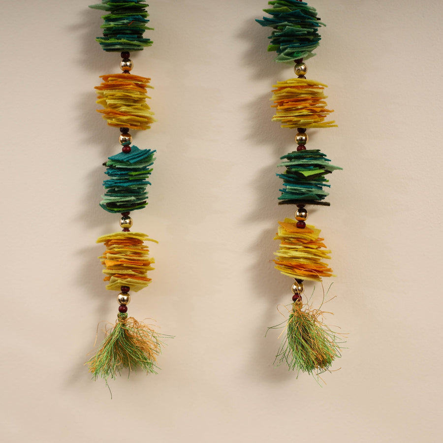 | Material | This handmade felt and beadwork wall hanging (set of 2) is the perfect addition to your diwali or festive decor. Crafted by skilled artisans using felt, beads, and wood, it brings traditional charm and blessings to your home. Its unique design adds a touch of elegance and cultural richness to any space. |