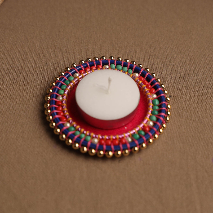 | Material | Elevate your home decor with this handmade bangle tea light holder, blending traditional craftsmanship with contemporary elegance. Made from premium felt and adorned with delicate beads, this artistic piece adds a touch of charm to any room. Handcrafted by skilled artisans, this tea light holder illuminates your space. |