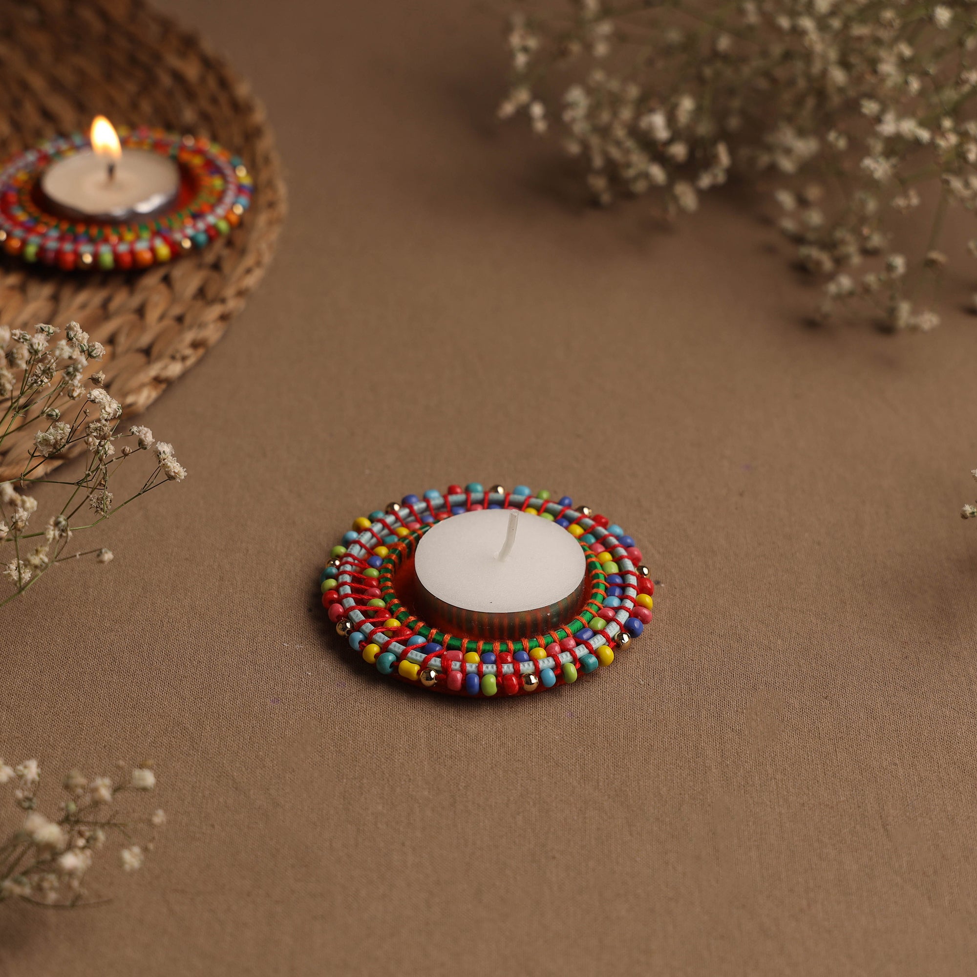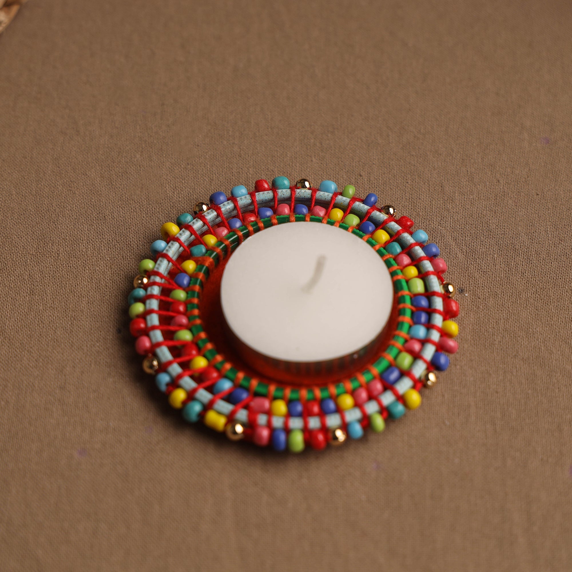 | Material | Elevate your home decor with this handmade bangle tea light holder, blending traditional craftsmanship with contemporary elegance. Made from premium felt and adorned with delicate beads, this artistic piece adds a touch of charm to any room. Handcrafted by skilled artisans, this tea light holder illuminates your space. |
