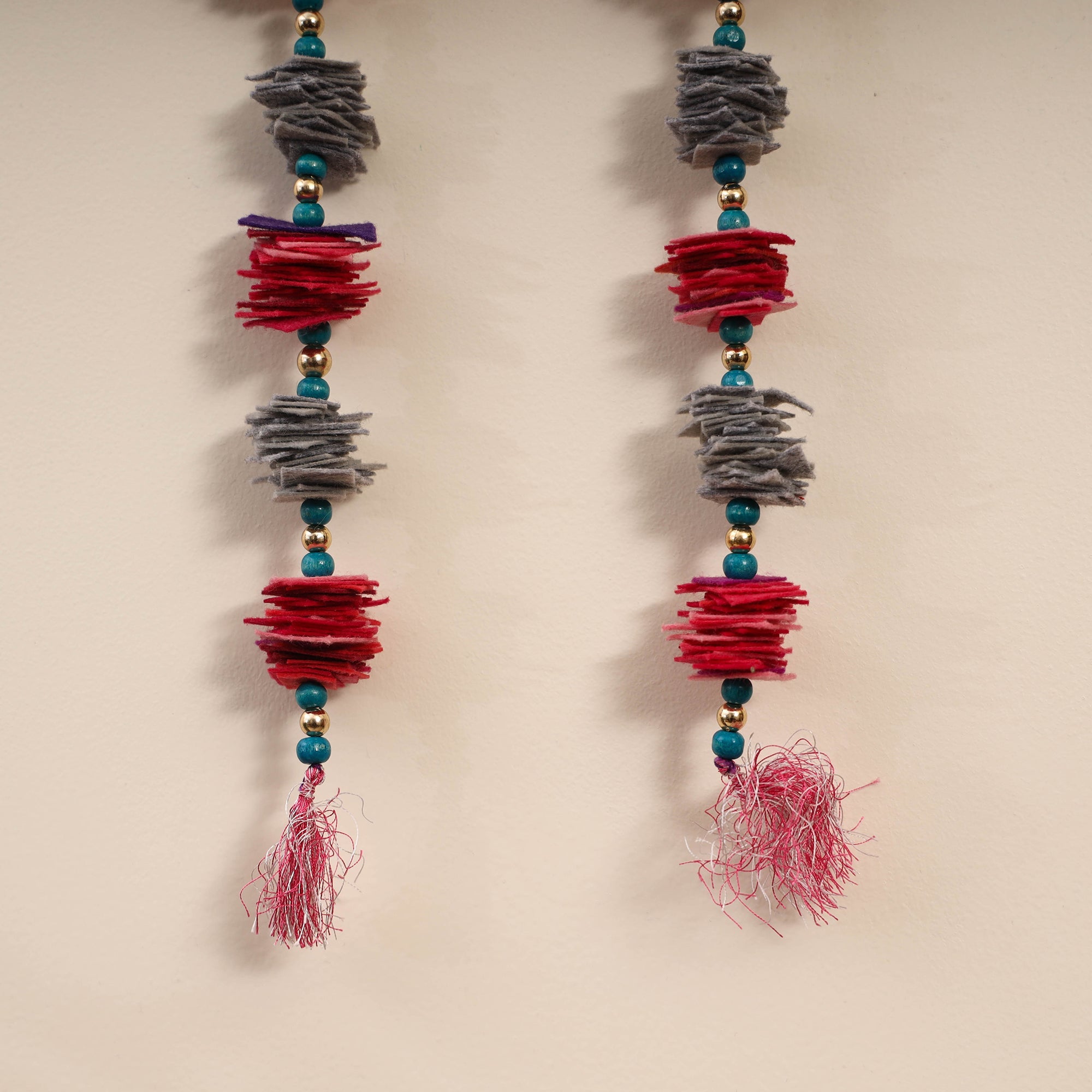 | Material | This handmade felt and beadwork wall hanging (set of 2) is the perfect addition to your diwali or festive decor. Crafted by skilled artisans using felt, beads, and wood, it brings traditional charm and blessings to your home. Its unique design adds a touch of elegance and cultural richness to any space. |
