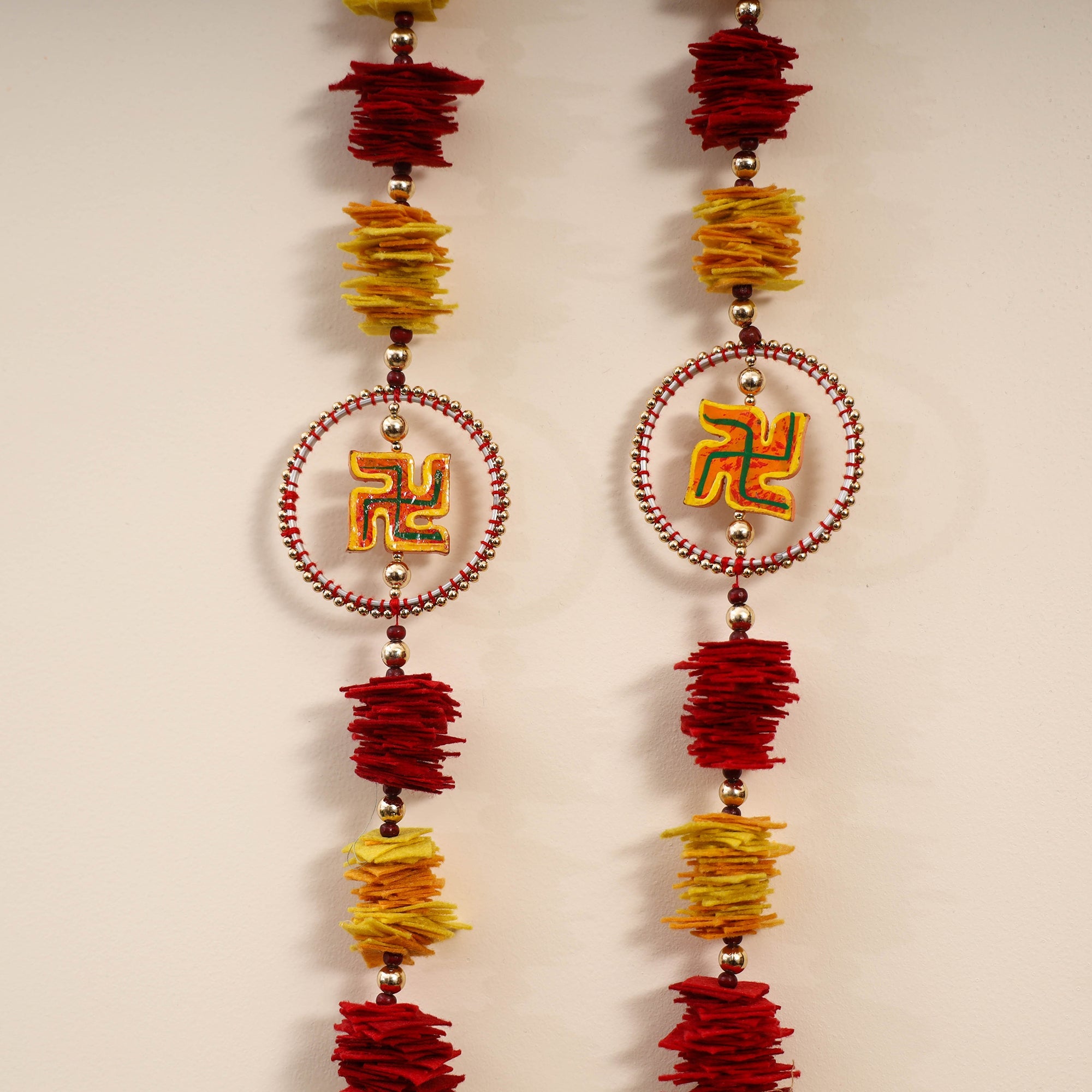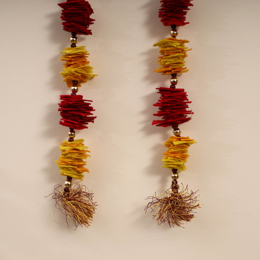 | Material | This handmade felt and beadwork wall hanging (set of 2) is the perfect addition to your diwali or festive decor. Crafted by skilled artisans using felt, beads, and wood, it brings traditional charm and blessings to your home. Its unique design adds a touch of elegance and cultural richness to any space. |