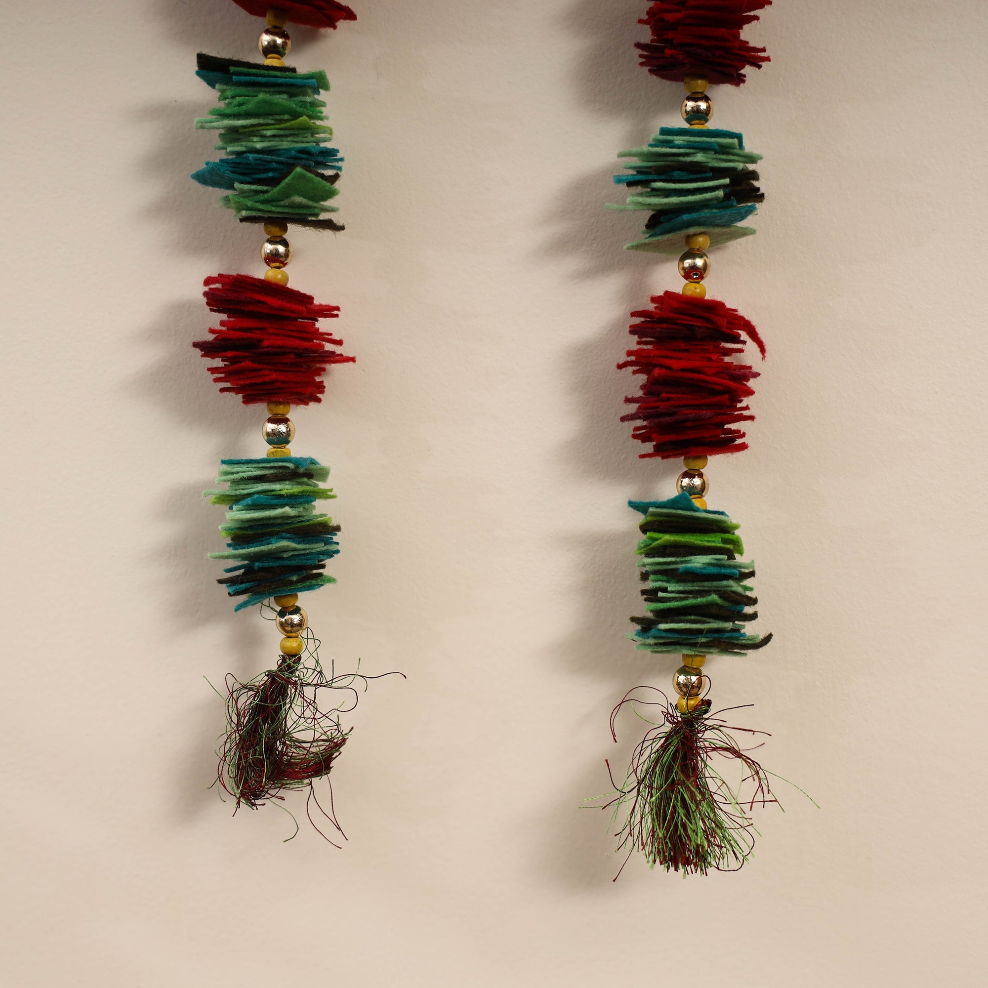 | Material | This handmade felt and beadwork wall hanging (set of 2) is the perfect addition to your diwali or festive decor. Crafted by skilled artisans using felt, beads, and wood, it brings traditional charm and blessings to your home. Its unique design adds a touch of elegance and cultural richness to any space. |