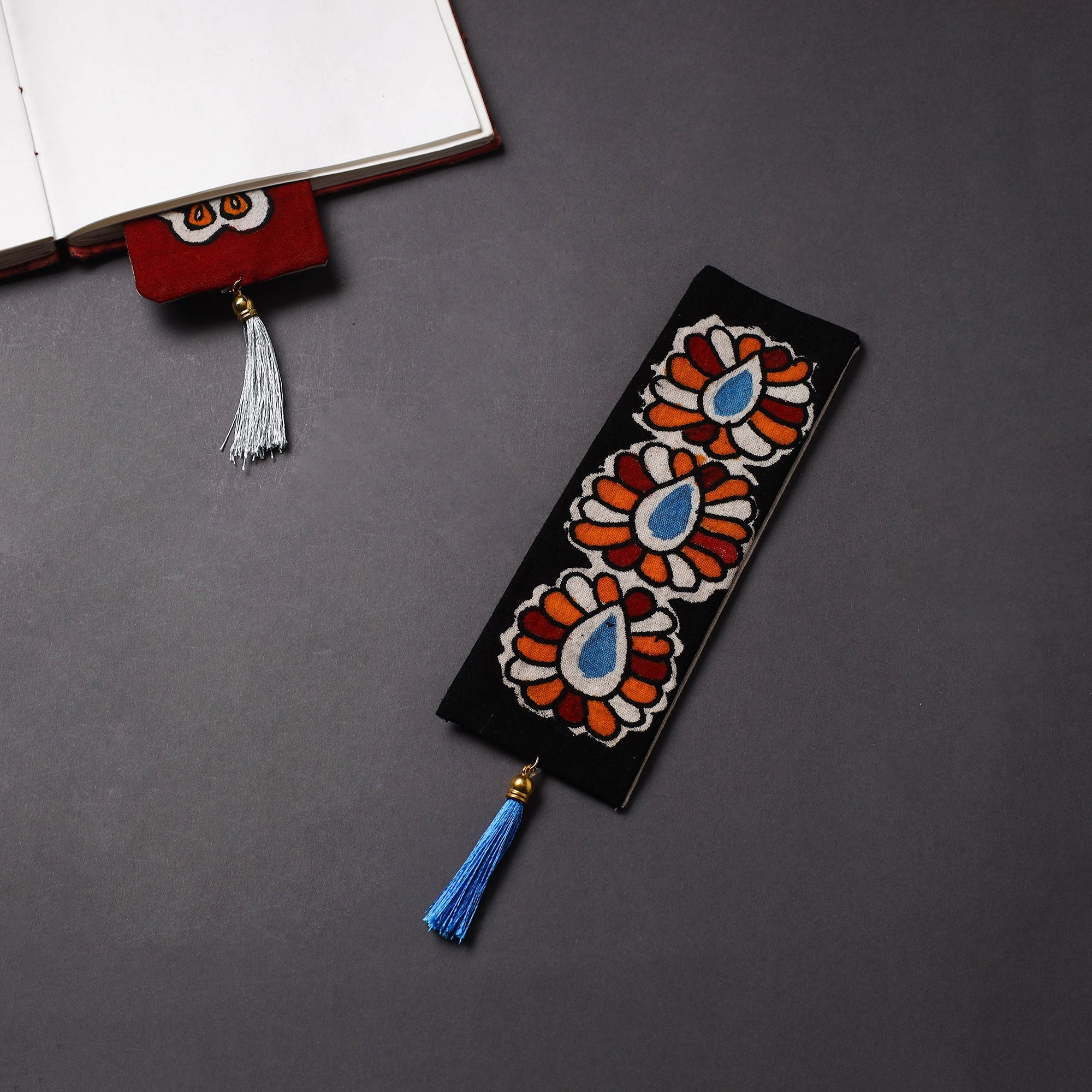 Add color to your reading with our handpainted fabric bookmark with tassel. Made from cotton and handpainted by artisans, this is great for marking where you're up to in your latest read.