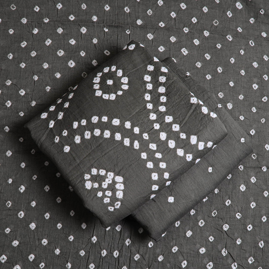 Grey - 3pc Satin Cotton Kutch Bandhani Unstitched Dress Material 42