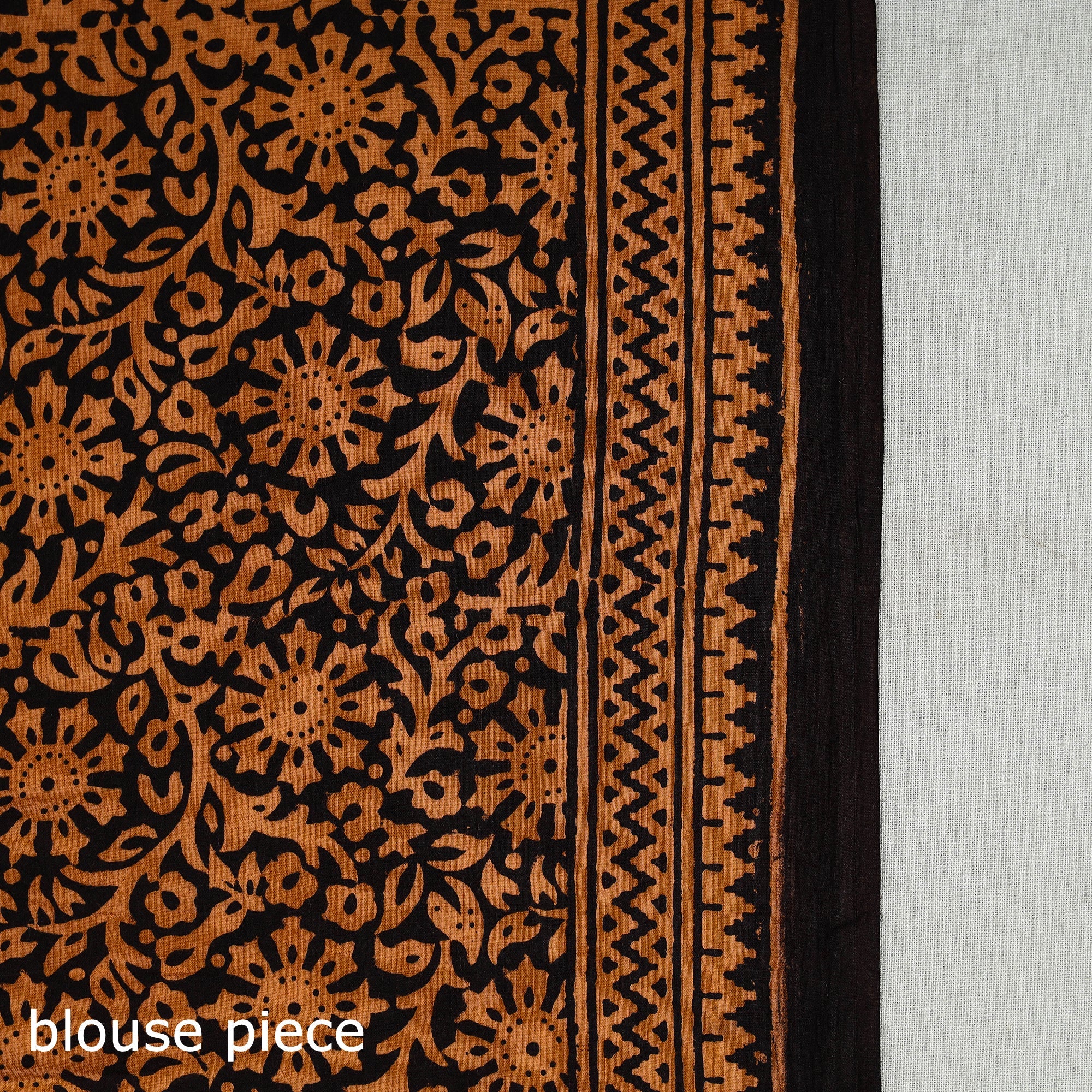 The stunning orange bagh prints add artistry to your ensemble. A very light weight cotton saree for your wardrobe. The designs and patterns are made using the traditional technique of block printing and natural dyes. Wear it to work, meetings or a lunch. Pair with juttis or sandals and silver earrings for a complete and stylish look. This saree offers a delightful blend of comfort and style.