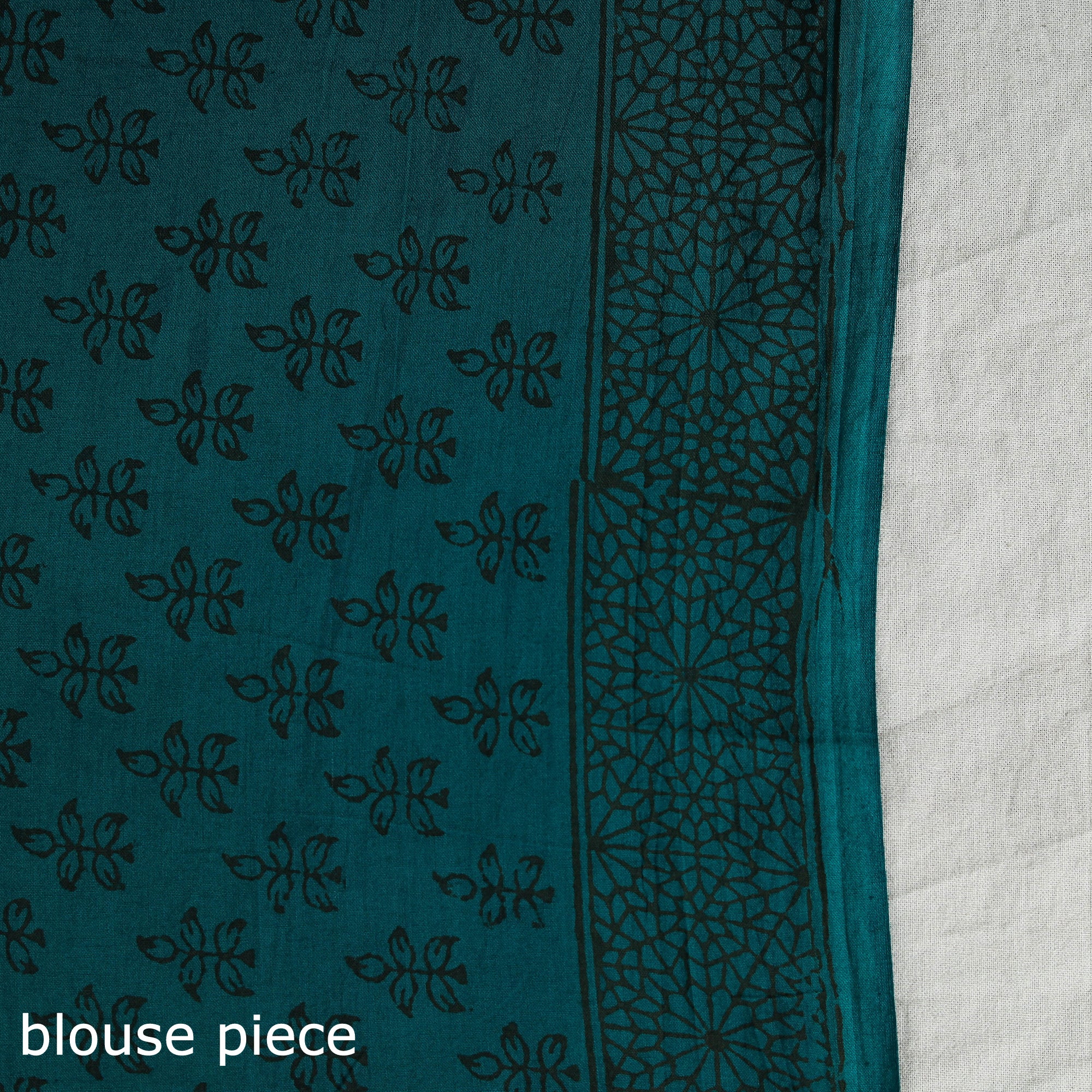 The stunning green bagh prints add artistry to your ensemble. A very light weight cotton saree for your wardrobe. The designs and patterns are made using the traditional technique of block printing and natural dyes. Wear it to work, meetings or a lunch. Pair with juttis or sandals and silver earrings for a complete and stylish look. This saree offers a delightful blend of comfort and style.