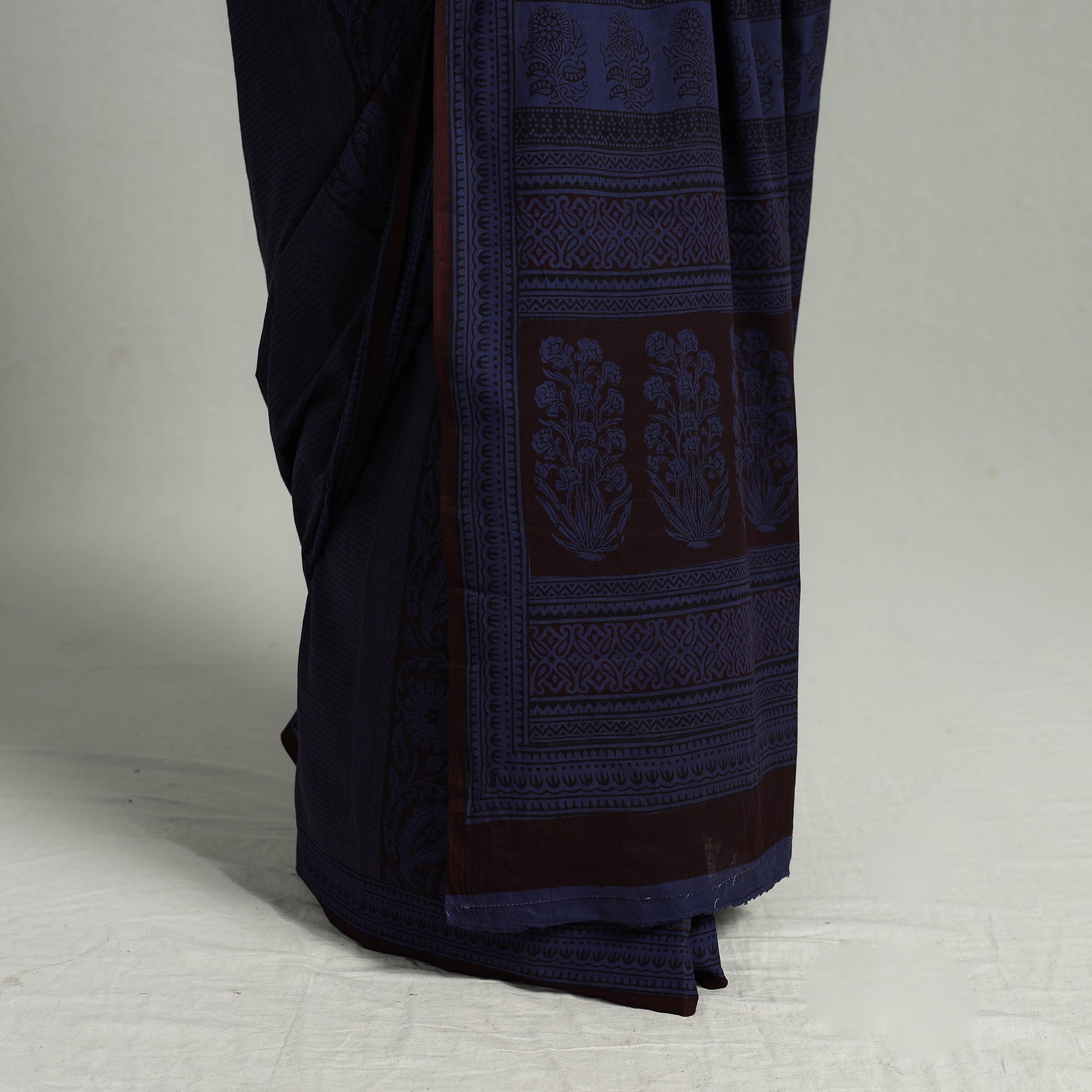 The stunning purple bagh prints add artistry to your ensemble. A very light weight cotton saree for your wardrobe. The designs and patterns are made using the traditional technique of block printing and natural dyes. Wear it to work, meetings or a lunch. Pair with juttis or sandals and silver earrings for a complete and stylish look. This saree offers a delightful blend of comfort and style.