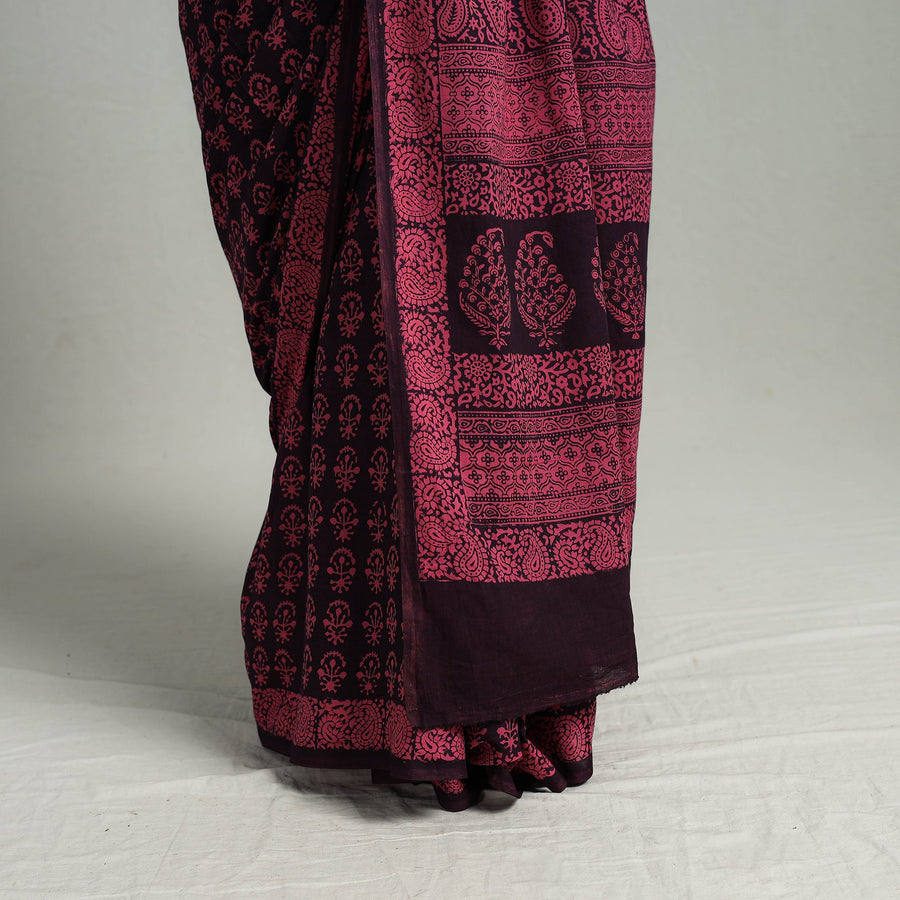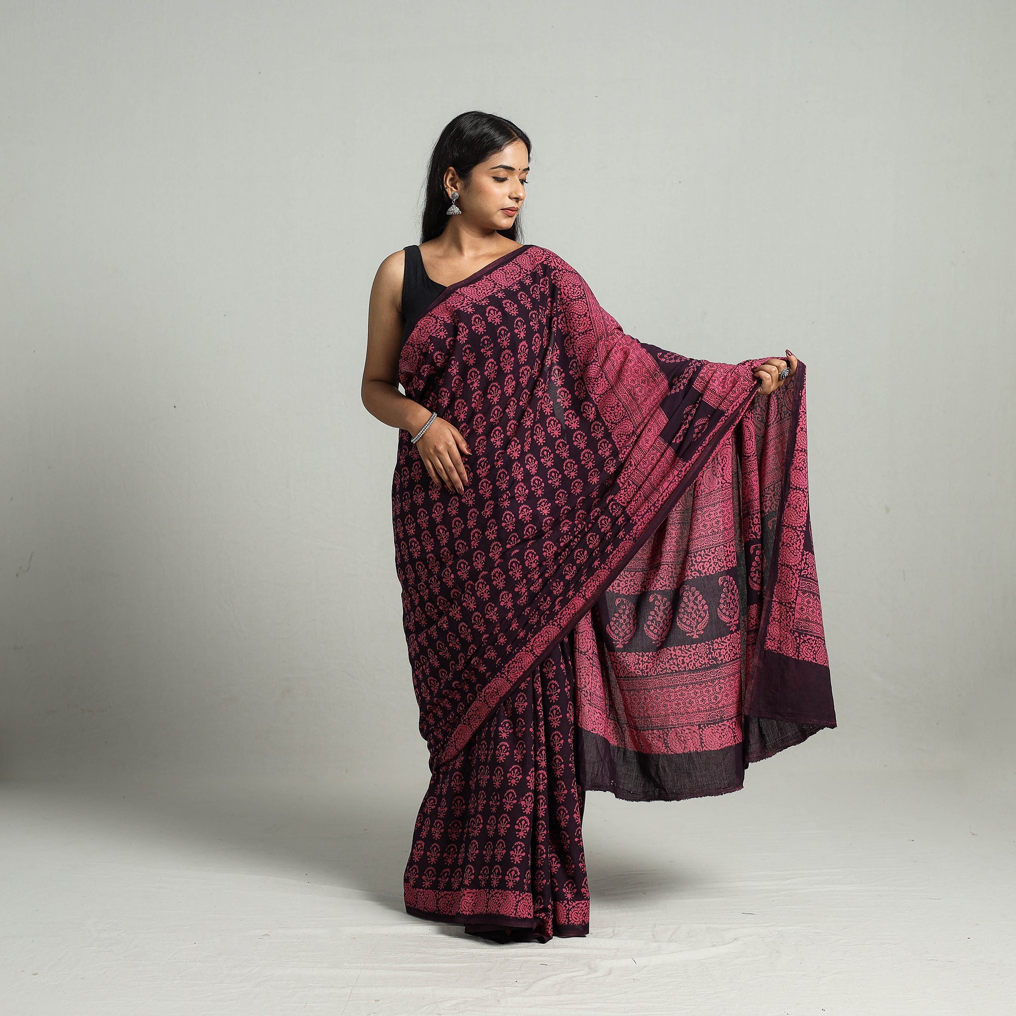The stunning pink bagh prints add artistry to your ensemble. A very light weight cotton saree for your wardrobe. The designs and patterns are made using the traditional technique of block printing and natural dyes. Wear it to work, meetings or a lunch. Pair with juttis or sandals and silver earrings for a complete and stylish look. This saree offers a delightful blend of comfort and style.