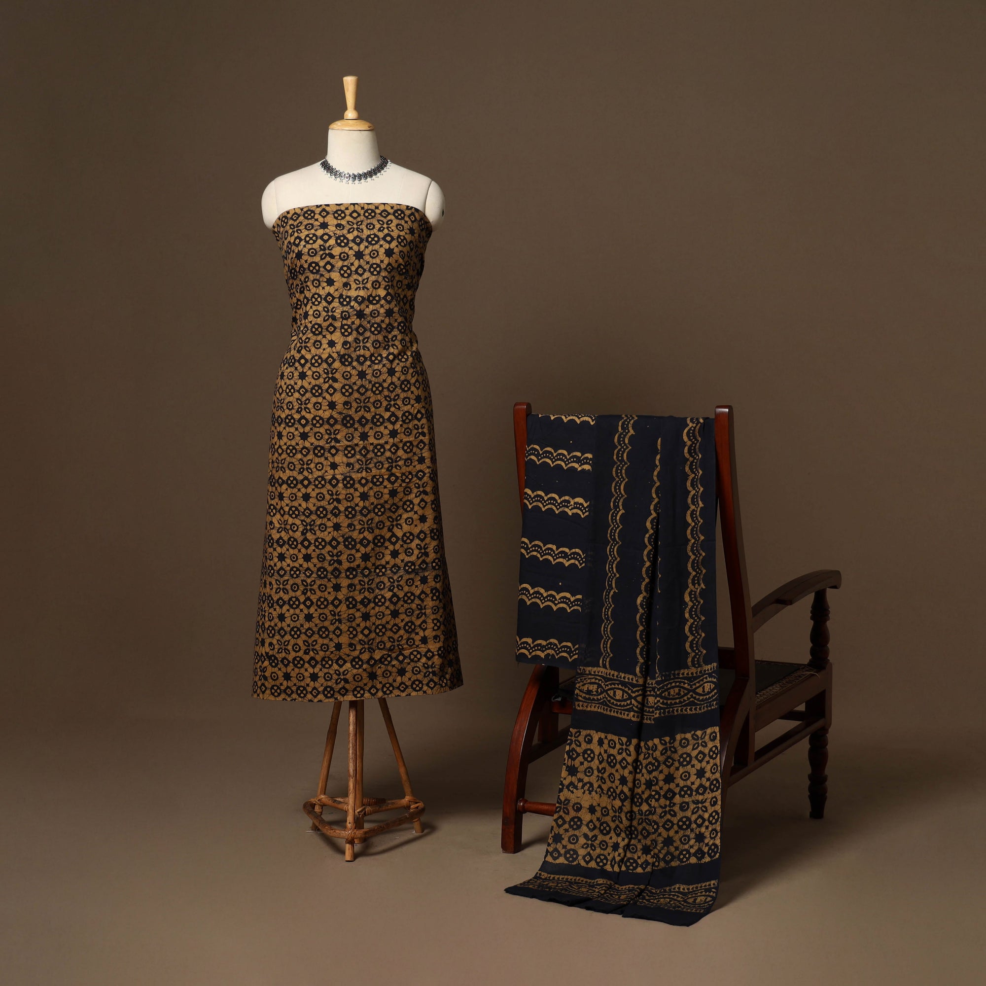 This brown 3pc cotton kutch batik print dress material, crafted in Kutch using traditional wax-resist dyeing techniques. Batik offers both durability and comfort, making it a perfect choice for everyday or festive wear. The vibrant colors and intricate designs make this set a statement piece.