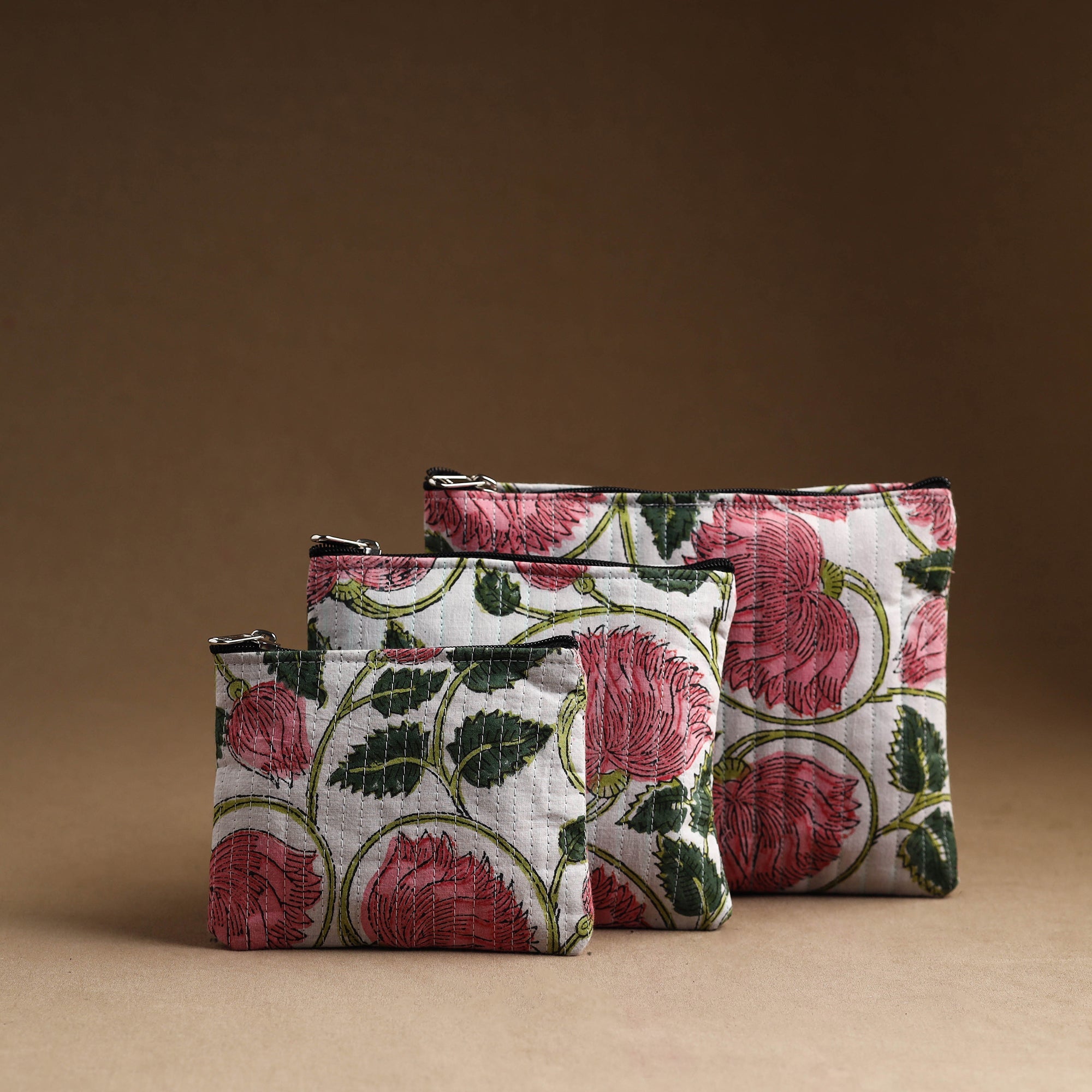 Material Keep your essentials organized with our handmade cotton utility pouch set. This utility pouch set provides ample space for your essentials. The foam layer lining ensures durability and protection. This multipurpose pouch set is perfect for storing toiletries, cosmetics, or daily essentials. Featuring a secure zip closure, these eco-friendly pouches are both stylish and functional.