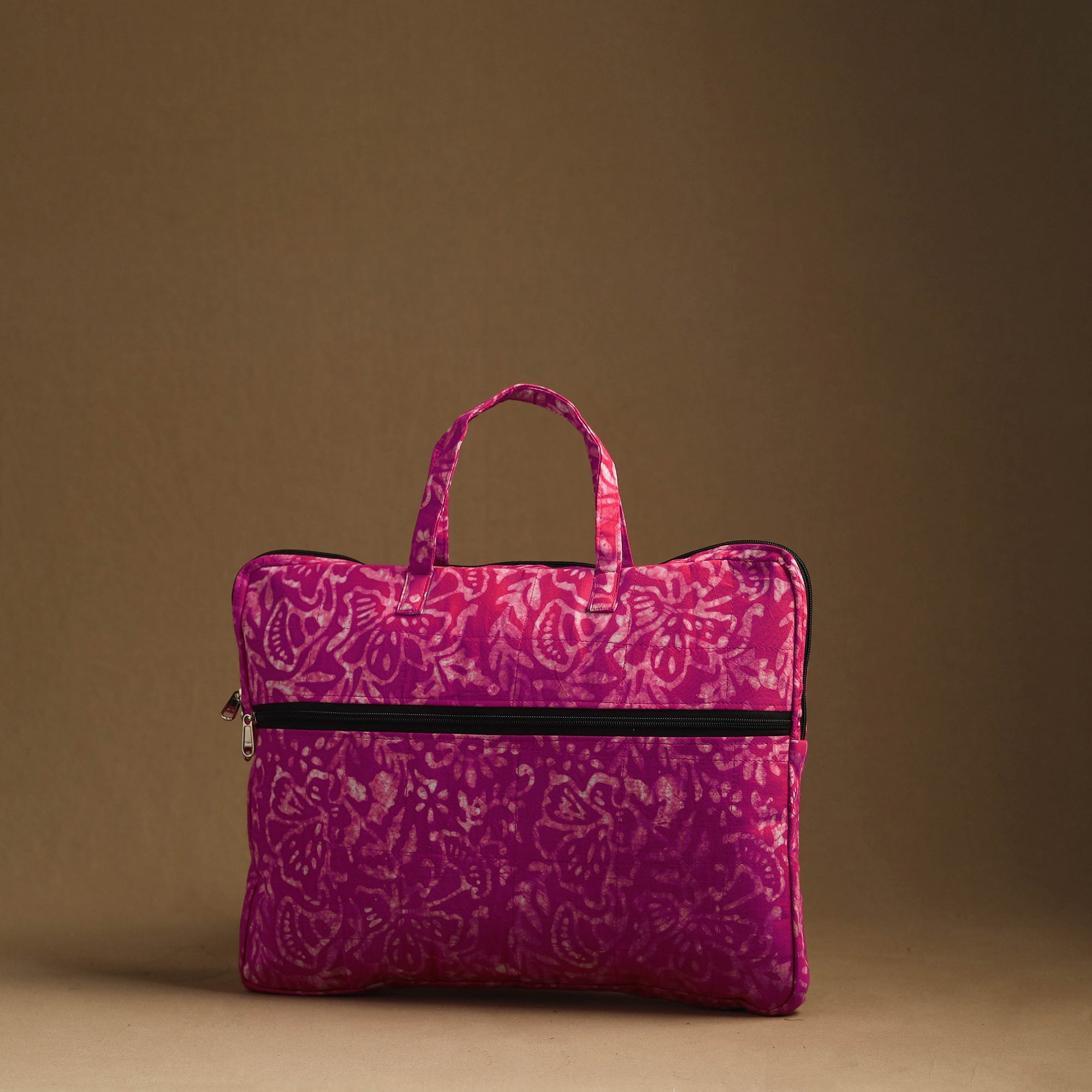 Protect and carry your laptop with style using our exquisite handmade quilted cotton laptop bag. Crafted from durable cotton fabrics and lined with foam for added protection, this elegant bag features a dedicated laptop compartment and a convenient zipper pocket on the outside.