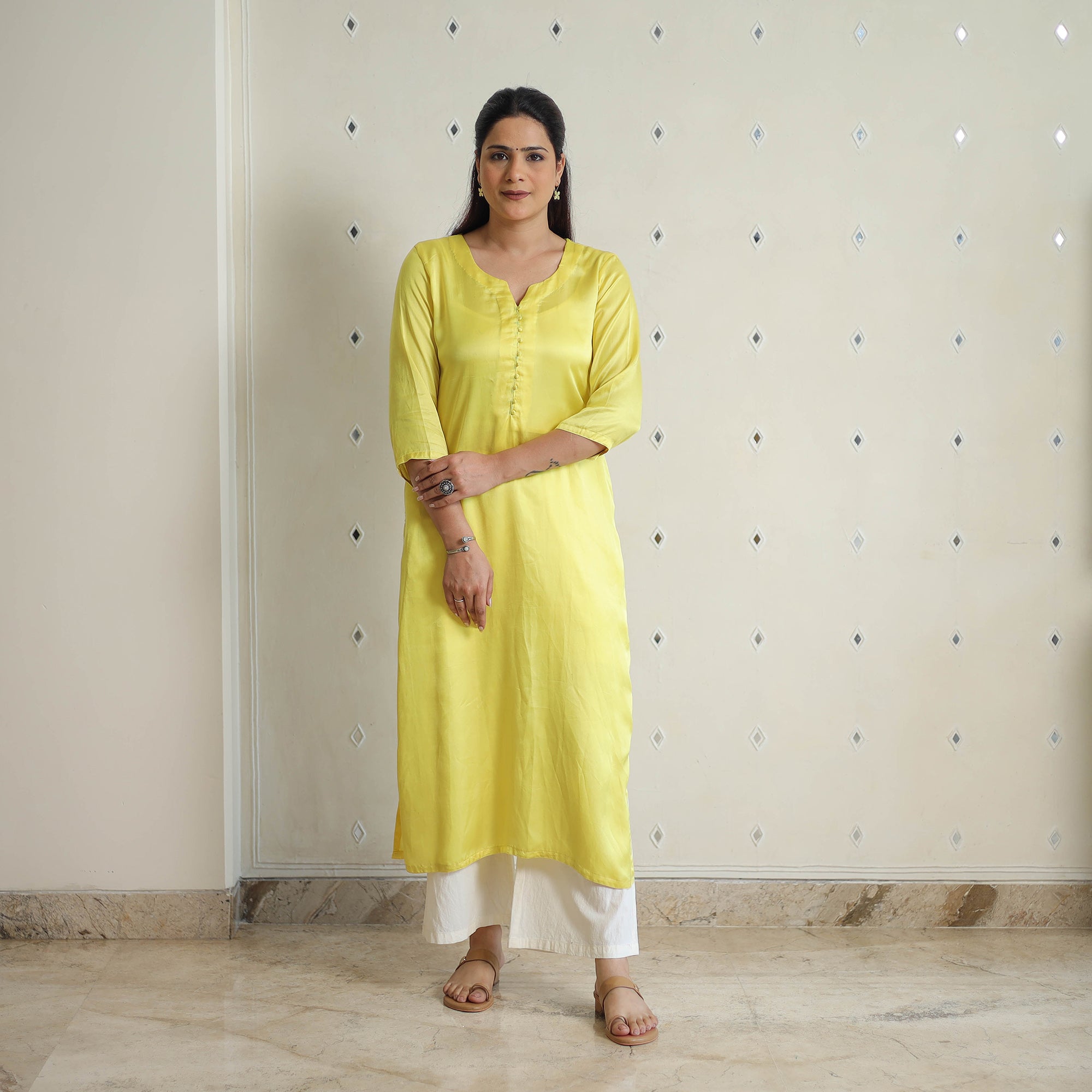 This modal silk straight plain kurta combines simplicity with elegance, crafted from luxurious modal silk for a soft, smooth feel. Featuring a convenient one-side pocket, it offers all-day comfort and effortless style, perfect for casual outings or special occasions.