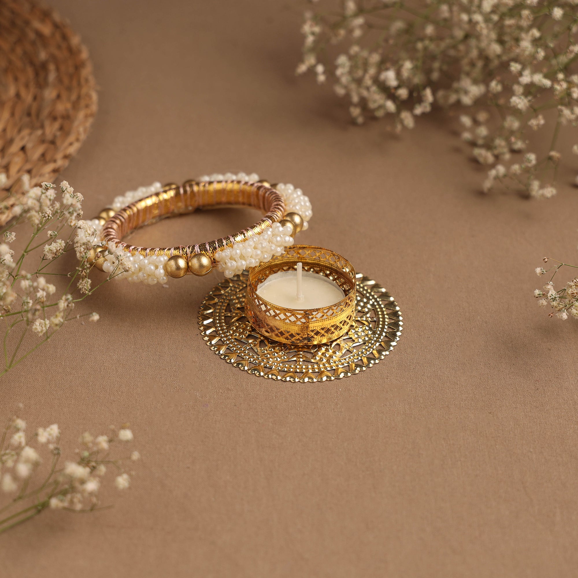 Illuminate your space with our handmade tealight candle holder, a stunning blend of tradition and artistry. Crafted with intricate gota & bead work, this holder brings vibrant colors and cultural charm. Perfect for special festival & occasions, it adds a unique touch to your decor.