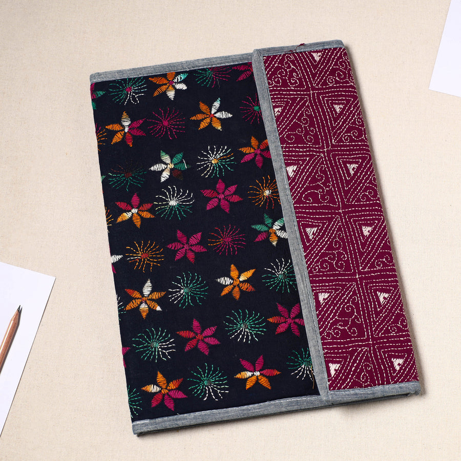 This multicolor handcrafted bengal kantha work file folder from West Bengal combines artistry and functionality. Intricately designed with traditional running stitches, it reflects the heritage of Bengal’s famous Kantha embroidery. Crafted from durable mount board, it features a clip lock and four spacious pockets for organizing documents. Ideal for personal or professional use, it’s a unique, eco-friendly way to support local artisans.