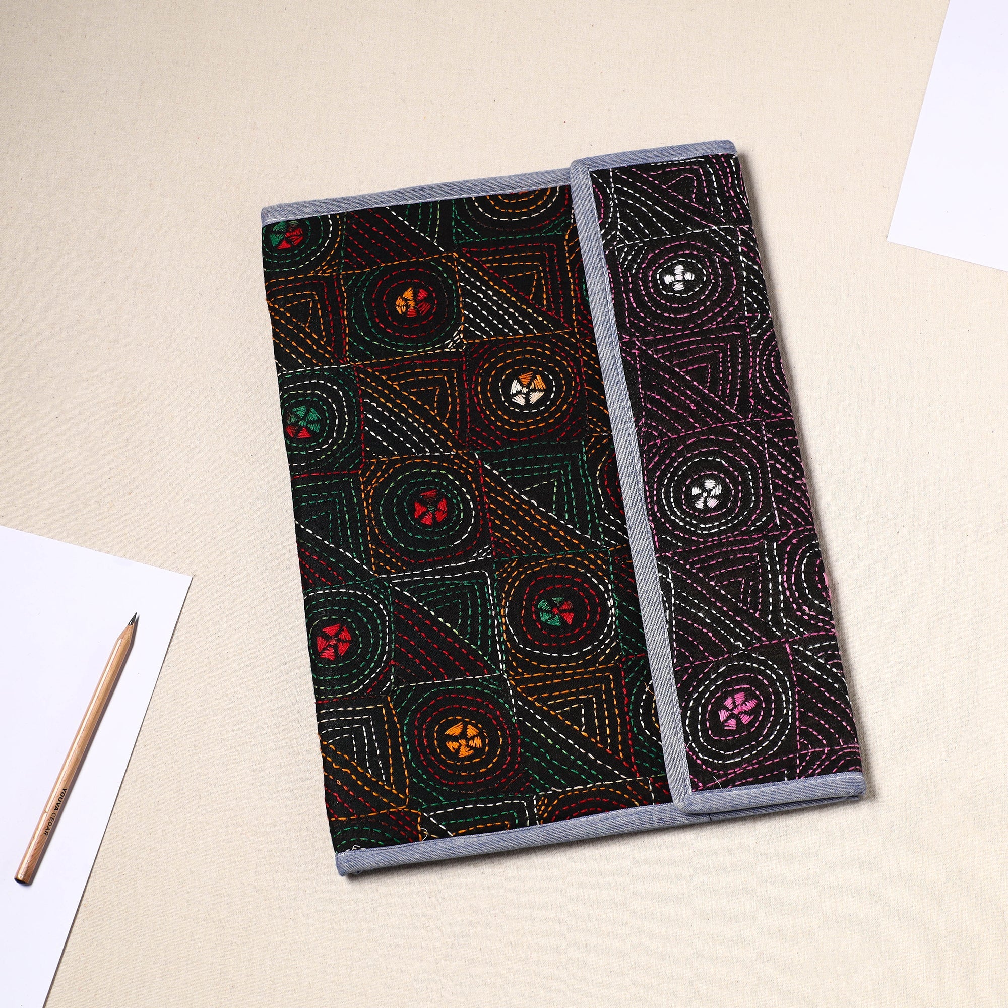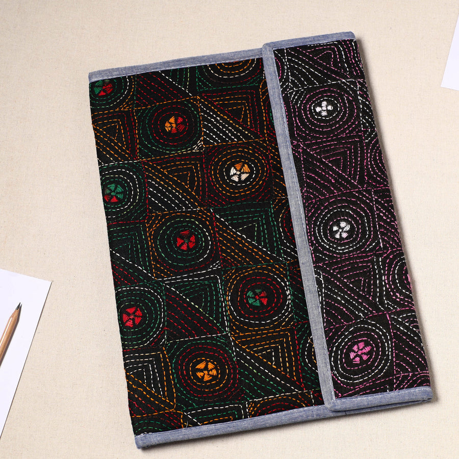 Black - Handcrafted Bengal Kantha Work File Folder 76