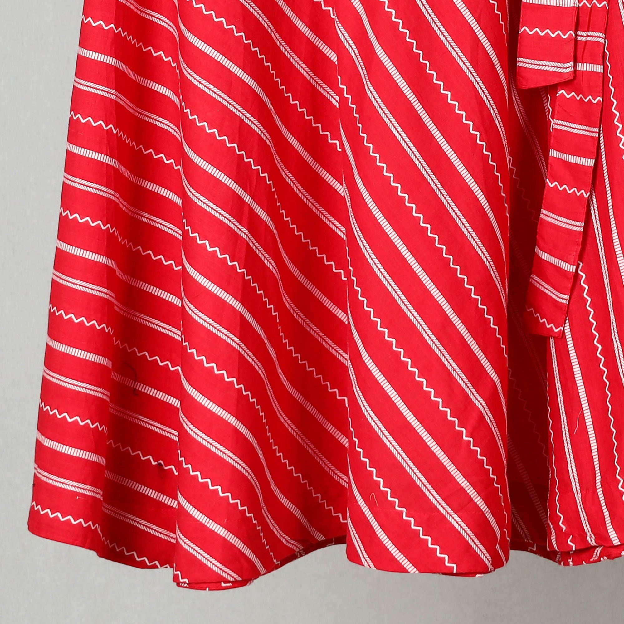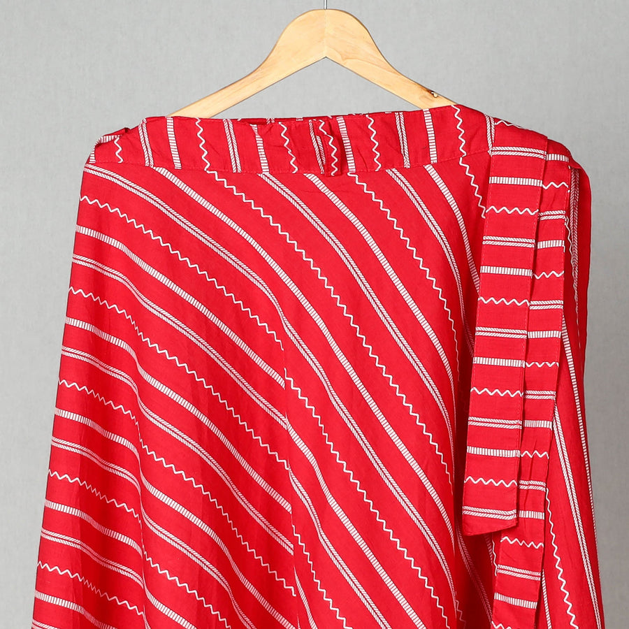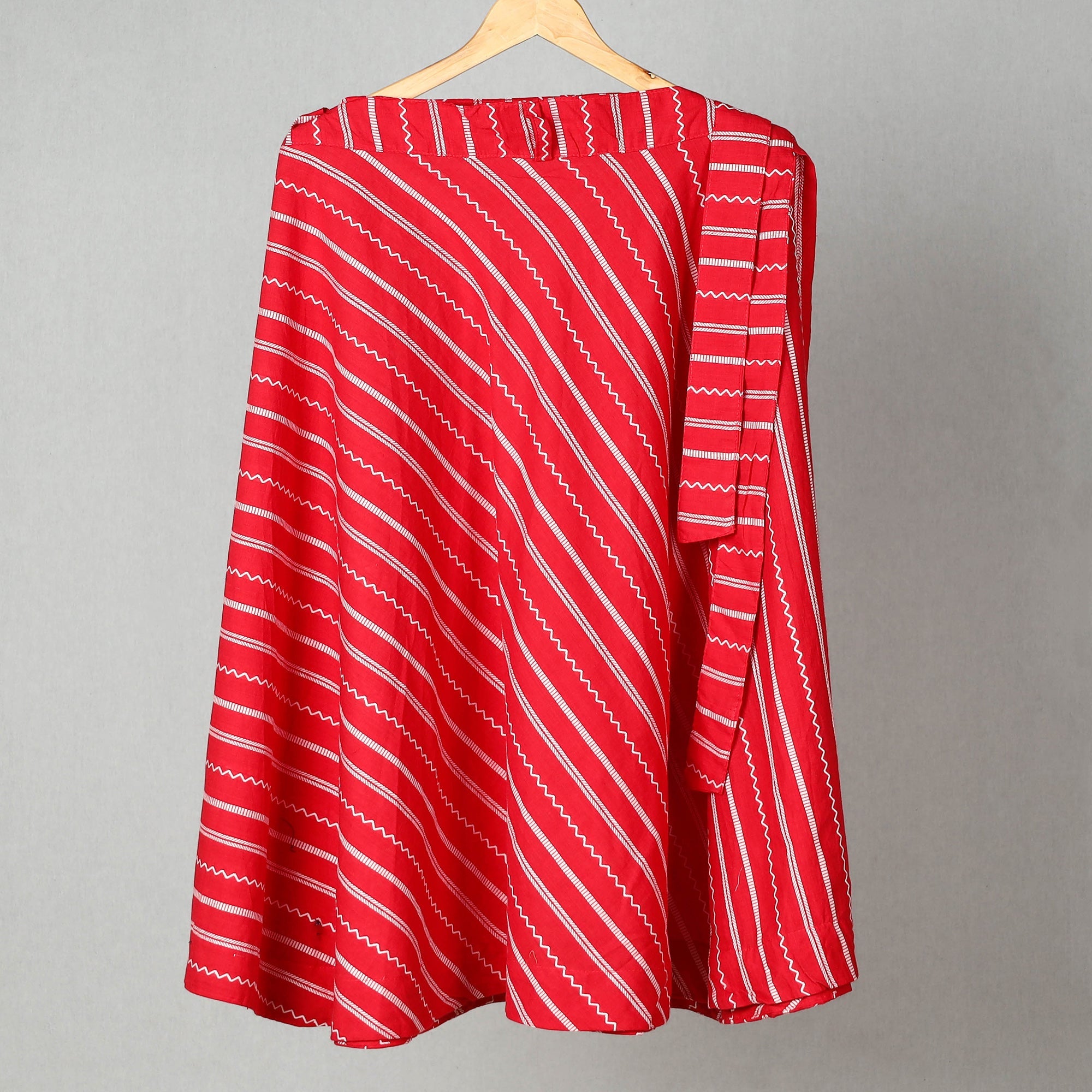 Elevate your style with this red jacquard wrap-around skirt. Featuring a waist tie-up closure, this skirt is stylish to wear. Made from cotton, this skirt showcases the rich texture of jacquard fabric is designed for comfort and style. Ideal for casual or festive wear.
