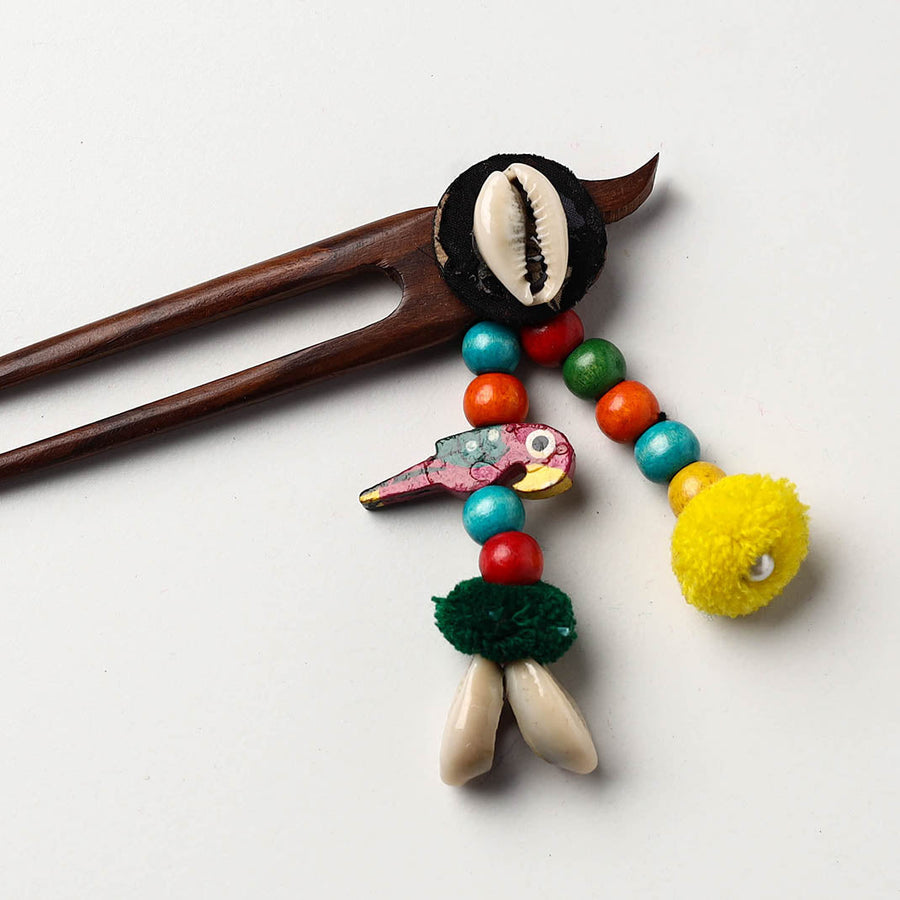 This handcrafted beadwork wooden juda stick combines tradition and eco-conscious design. Made with intricate beadwork, shells, and pompoms, fabric, it’s perfect for creating elegant hair updos for weddings or festivals. Artisans carefully make each piece. Eco-friendly and stylish, ideal accessory for those who value sustainability.