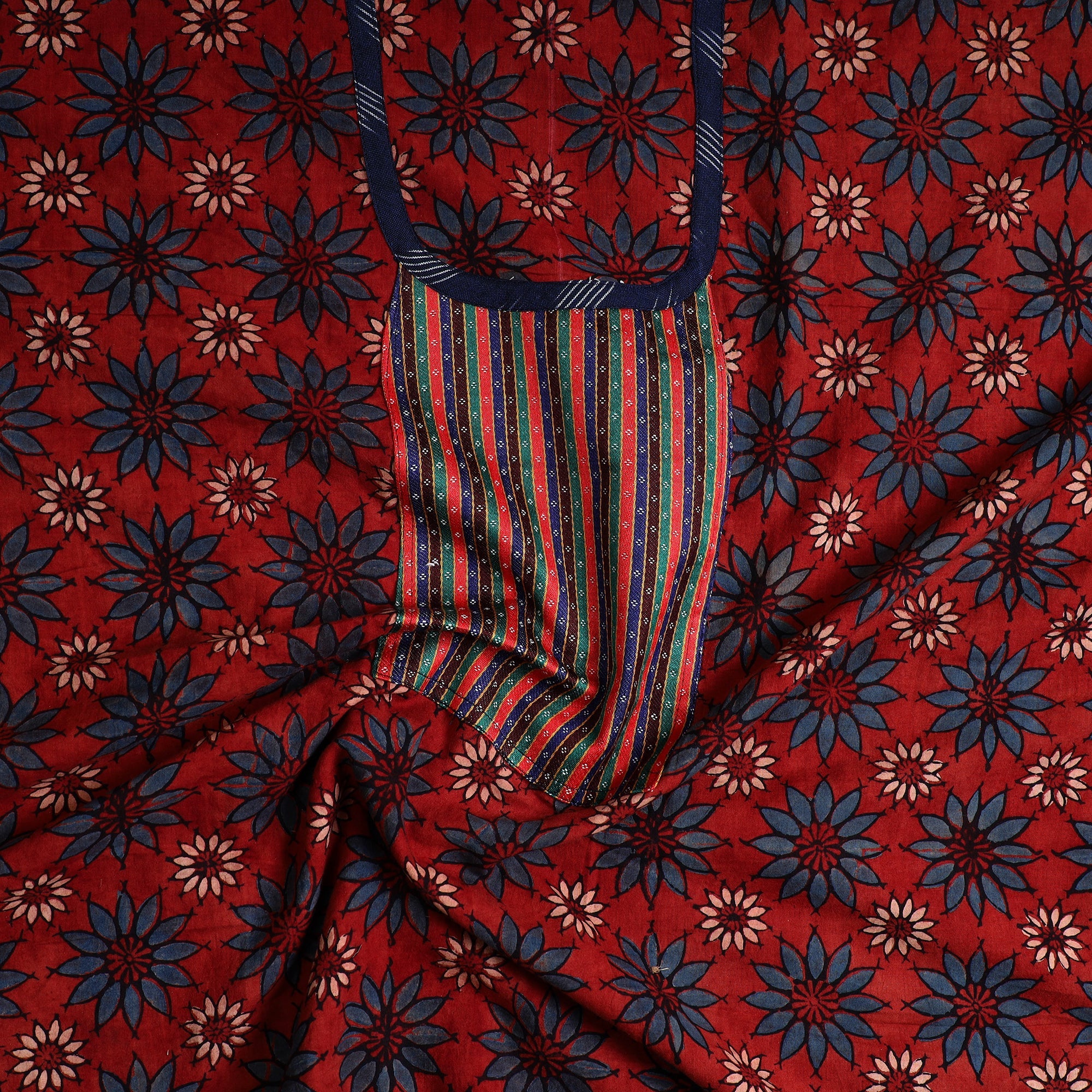 Ajrakh is a well-known traditional vegetable dyeing that resists block-printing techniques on cloth. Originated in Kutch, It is nearly around 4,500 years old practised by Khatri community of Kutch and Sikh.